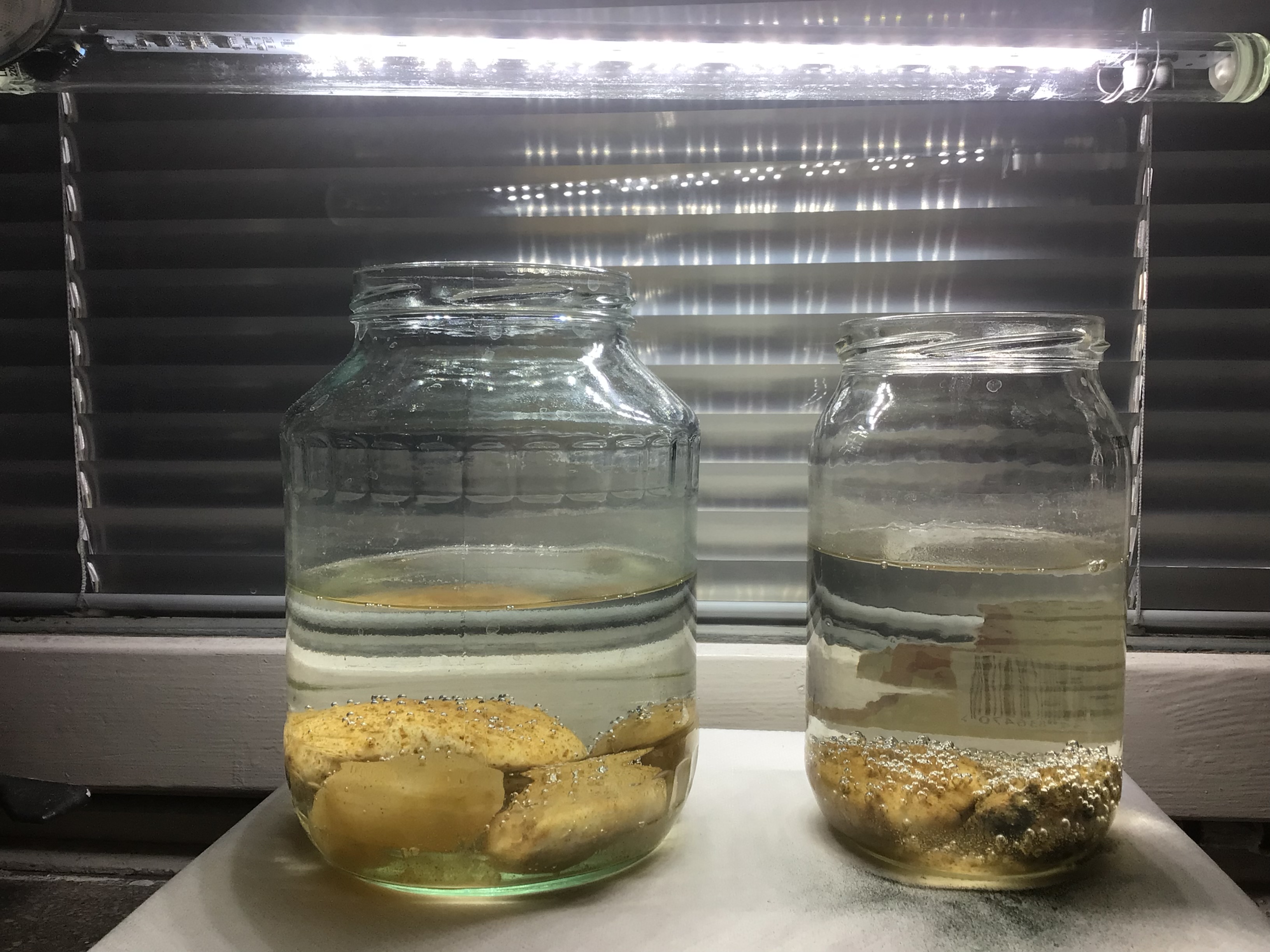 Położyłam dziś nowy słoik z kamieniami na innym parapecie. Tam niby jest więcej słońca, ale też bez szału. Mogę te dwa też tam postawić. Tylko te bąble mnie niepokoją- to nie świadczy o sinicach?
