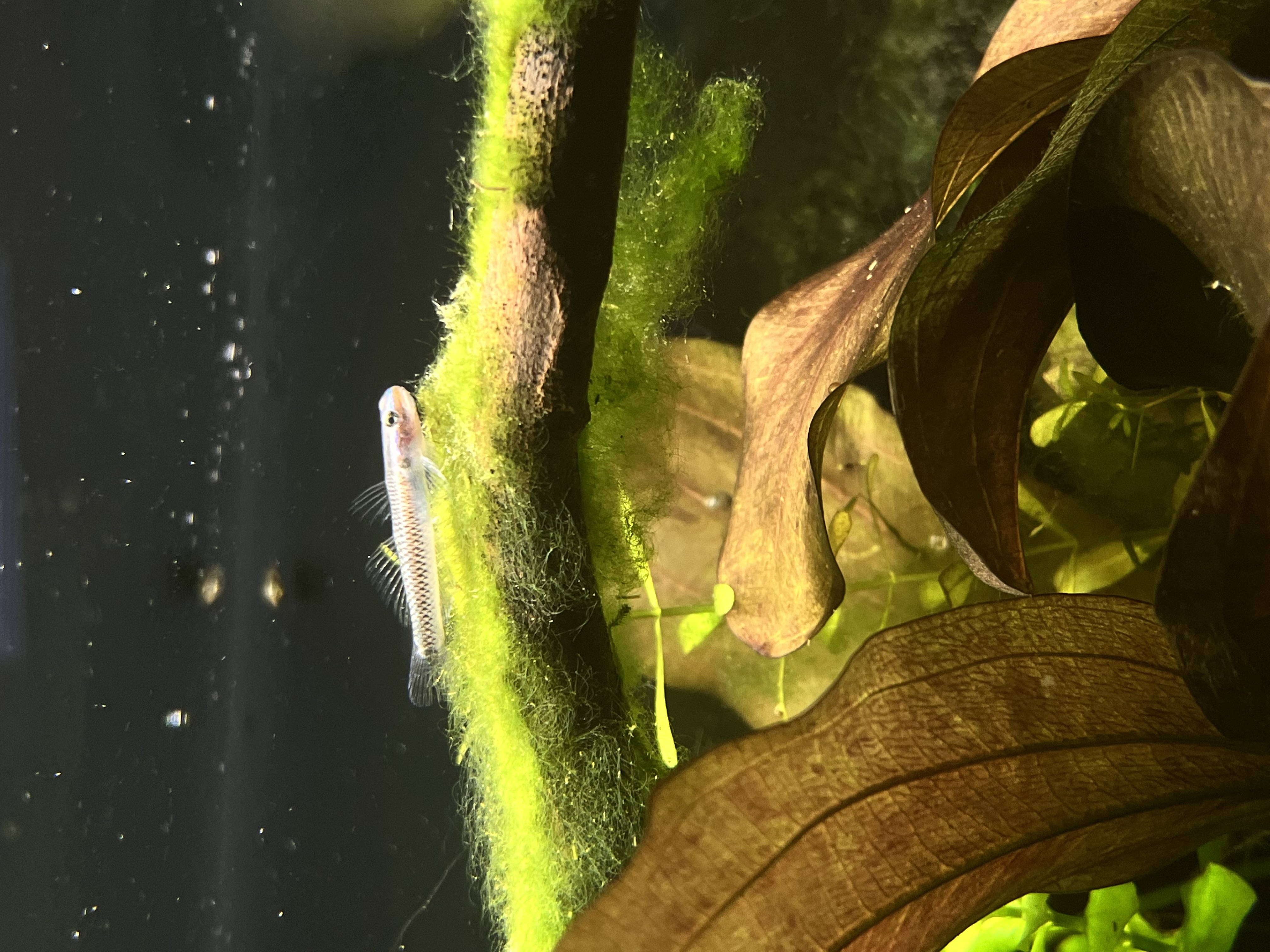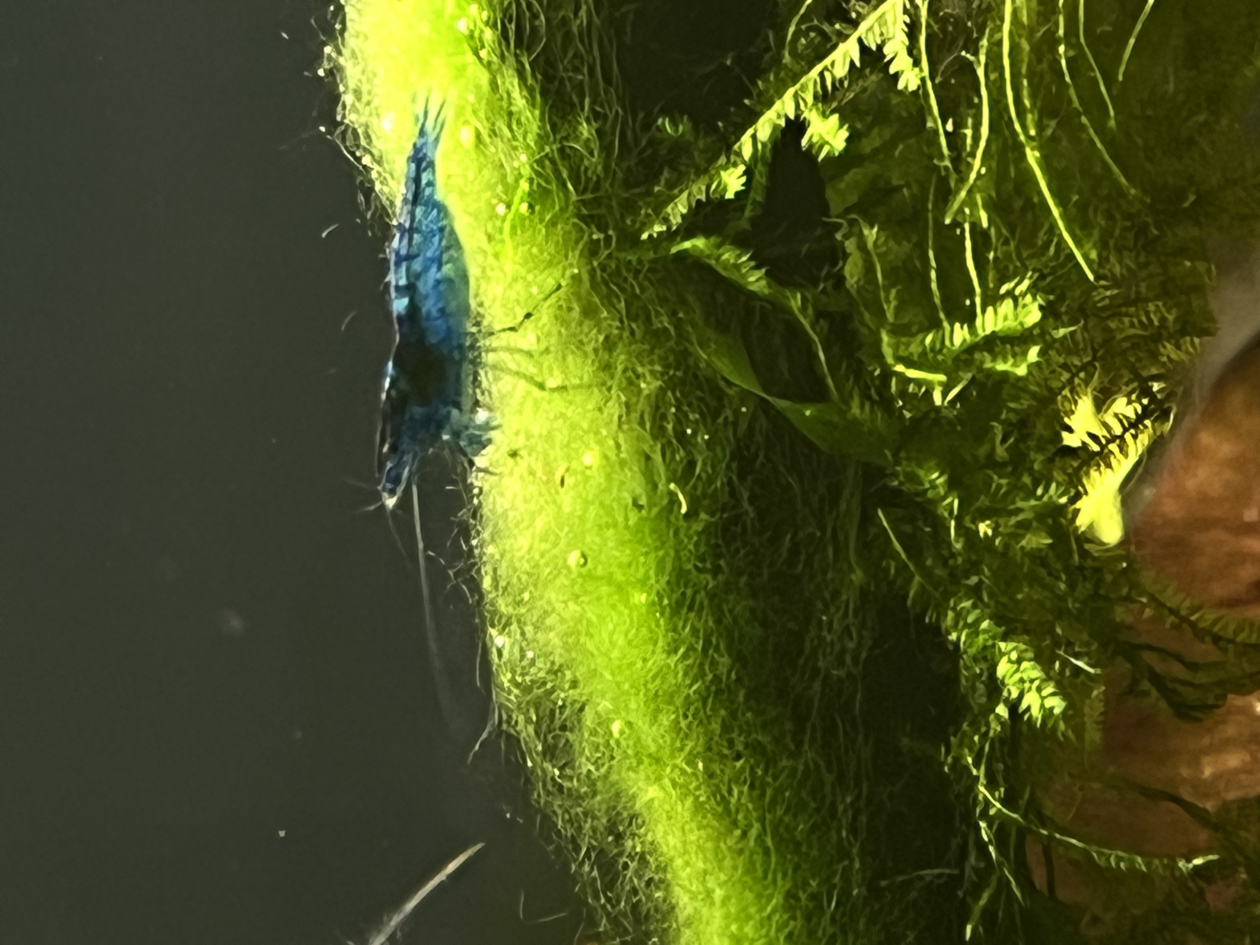 Ziomek od którego dostałem rogatka zrobił temu zdjęcie (też na rogatku). Ogolnie ciężko zobaczyć bo to drobnica straszna, ale jak kreweta zaczepi to się skupiają w sobie i zamiast białawo-przezroczystego bloba robi się biała kropka.