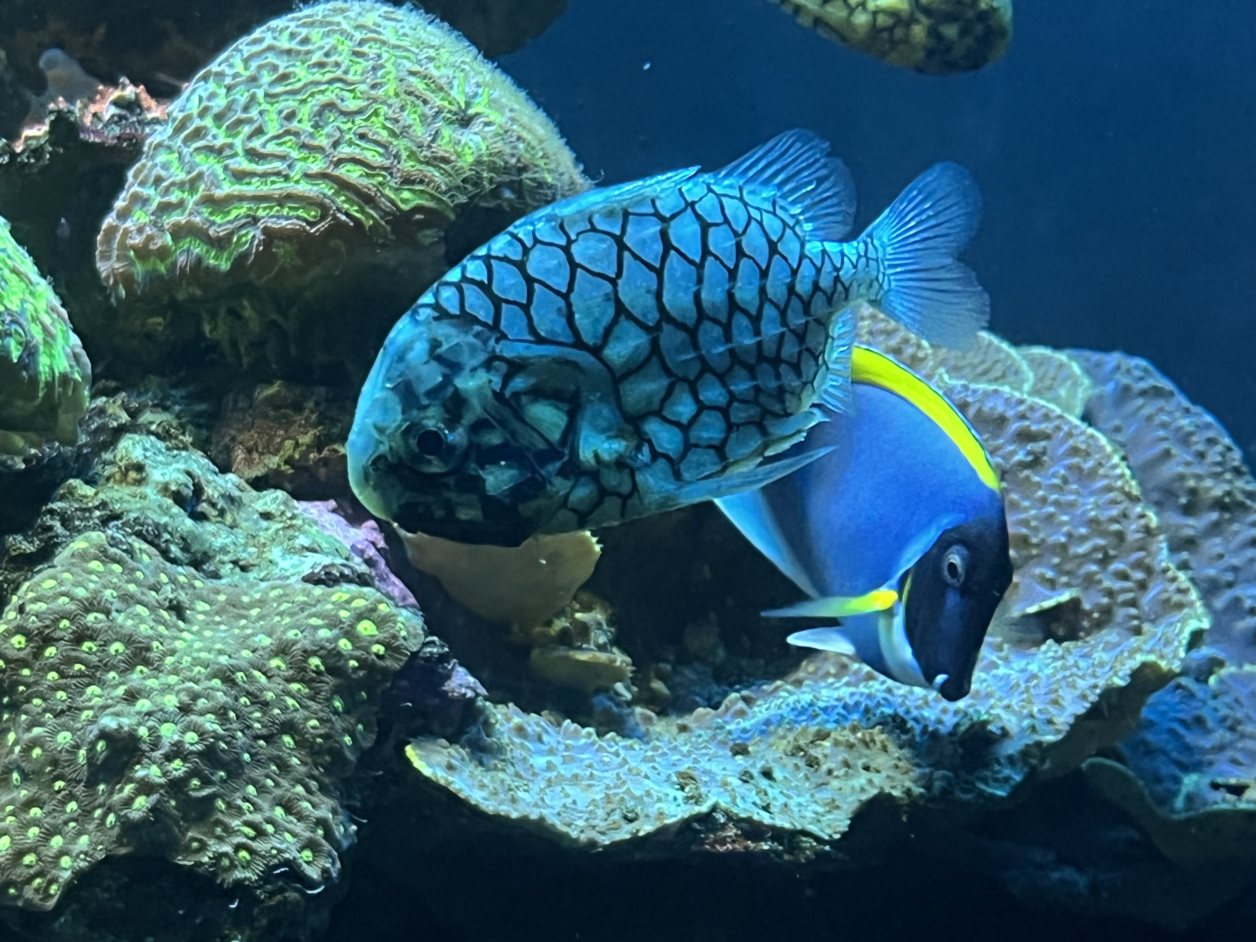 Zdjęcia morskich zbiorników robiłam głównie z pomarańczowym filtrem (nakładką na telefon). Załączam przykłady różnic. Bez filtra i z filtrem.