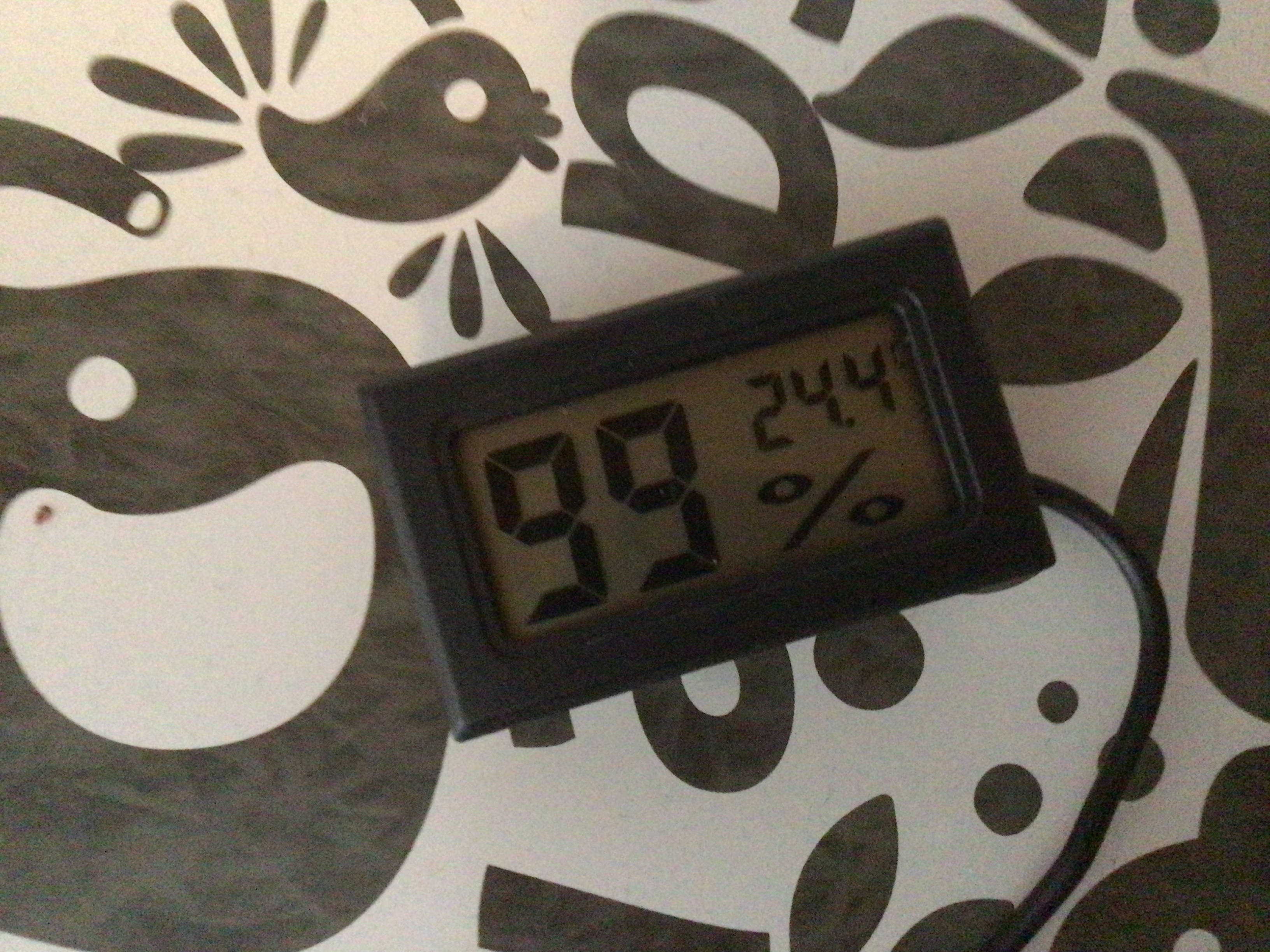 Bo ma pomiar tylko do 99%. Pewnie by pokazywał 150, gdyby mógł. Teoretycznie ma się mylić tylko o 5%, ale nie bardzo wierzę, że mam w terrarium aż tyle. Czy może to być efekt pary? Pudełko jest zaparowane bo od spodu działa mata grzewcza. Może od tego higrometr się myli. W takim wypadku nie warto by było kupować kolejnego.
