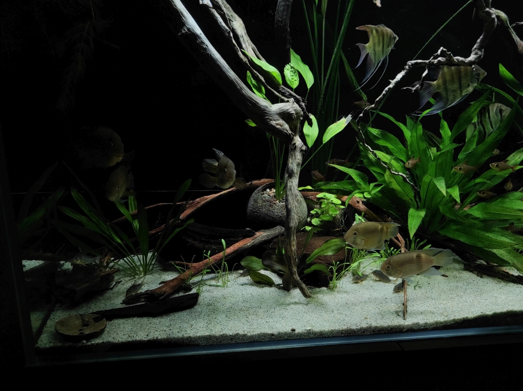Dobra. Dawno nic nie było więc kilka fotek z mojej strony. Aktualna obsada to: Cleithracara maronii, Pterophyllum leopoldi, Corydoras Sterbai, Hyphessobrycon sweglesi, Sturisomatichthys aureus