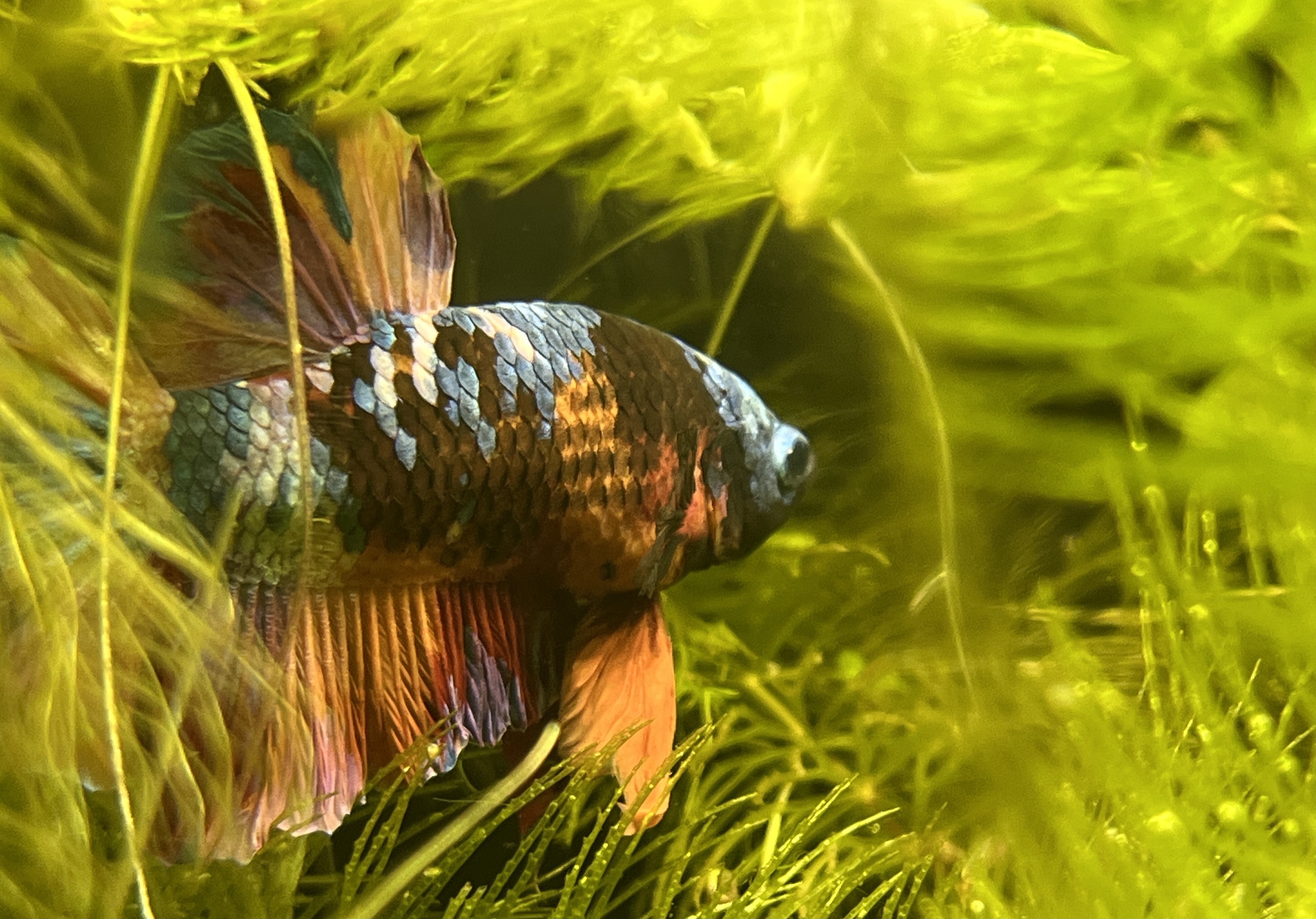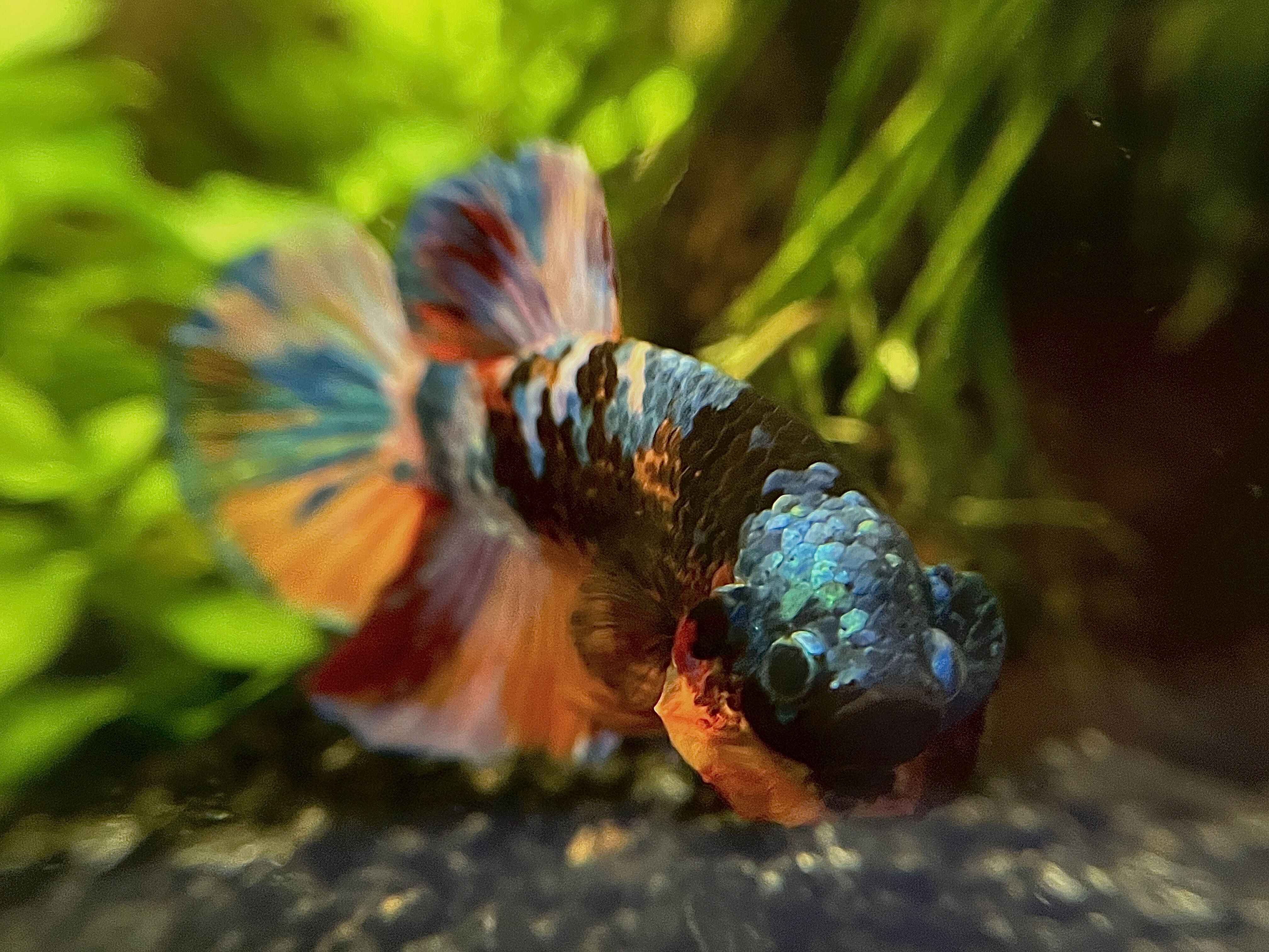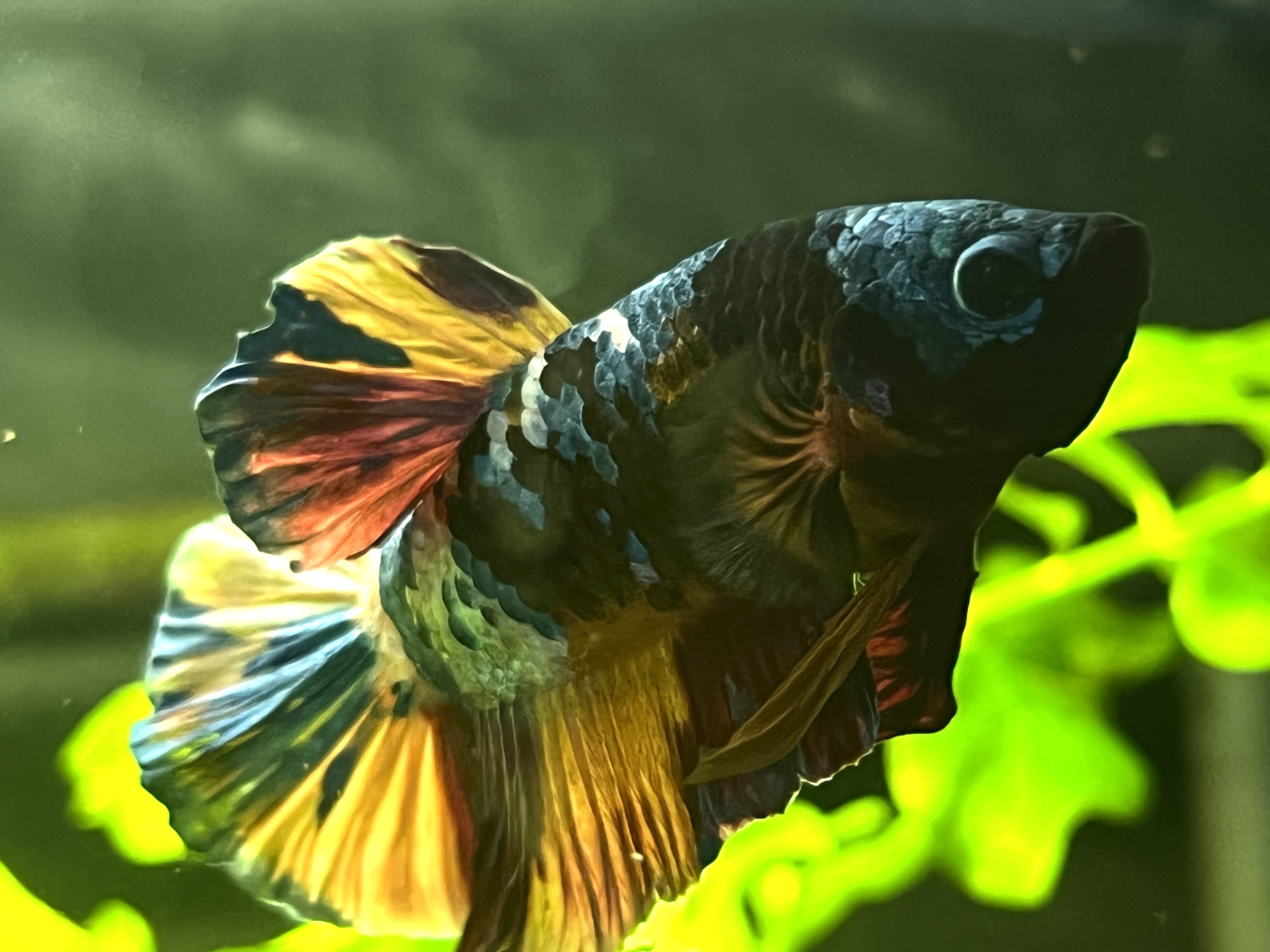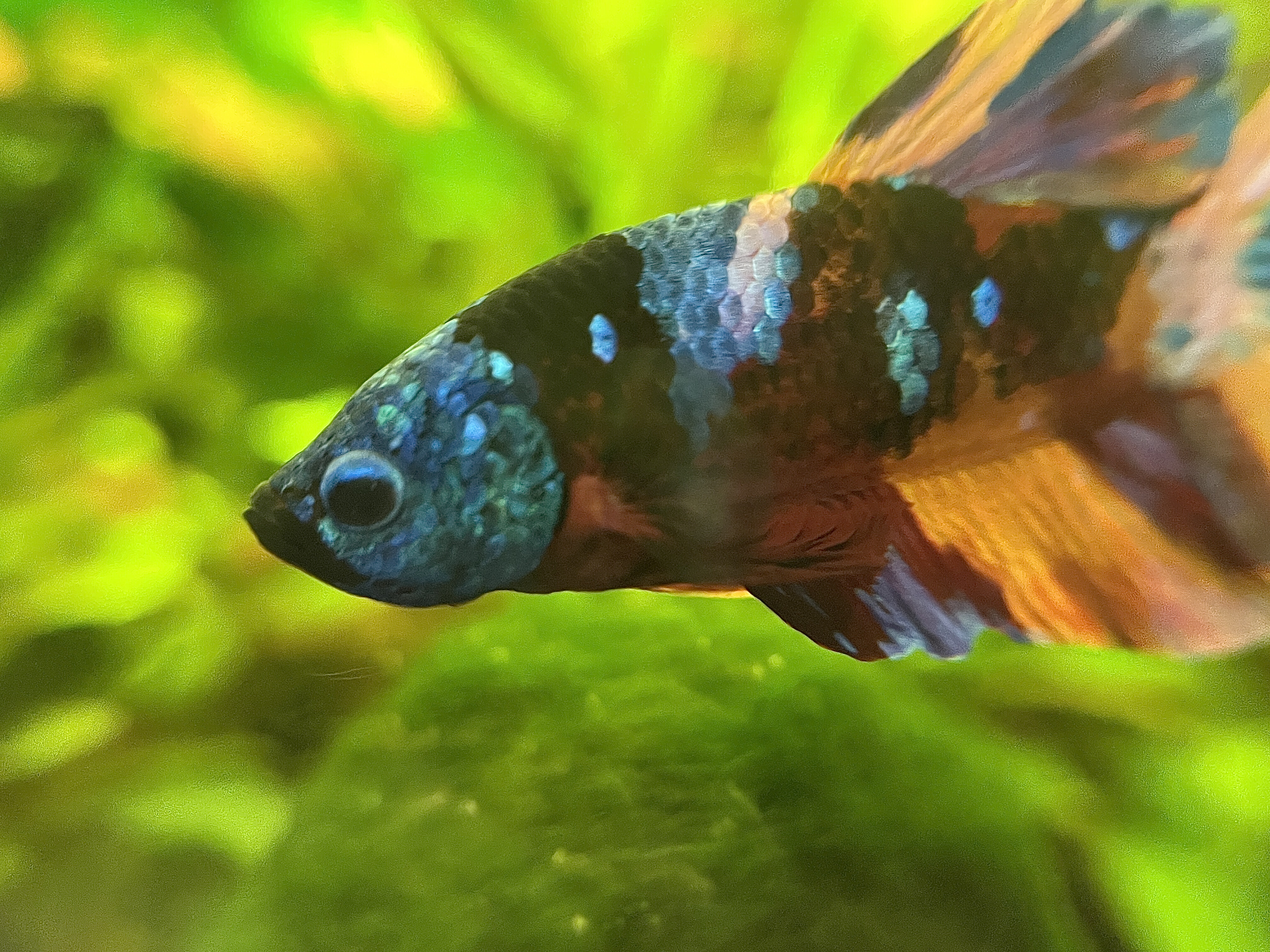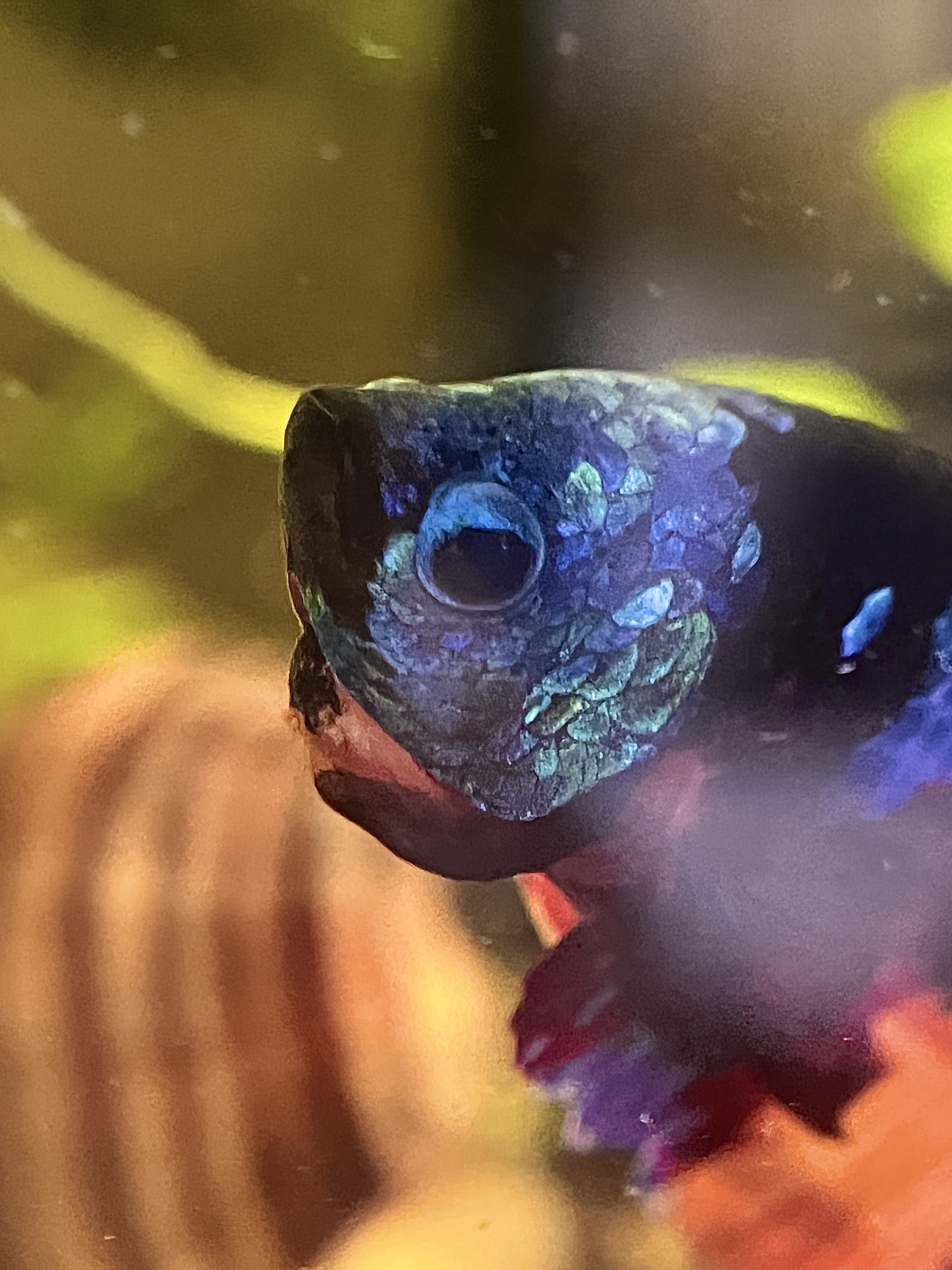 Aktualizacja. Przedstawiam Wam Lunka (Lunar). Niesamowicie ciekawska i pełna życia rybka. Nie sprzedała się w sieciówce przed świętami (bardzo dużo bojowników się nie sprzedało, może przez inflację). Wzięłam ją z lekkim niepokojem, że w ten sposób nakręcam biznes. Obiecałam sobie, że jak do 24.12 do dnia zamknięcia sklepu nikt jej nie weźmie to biorę.