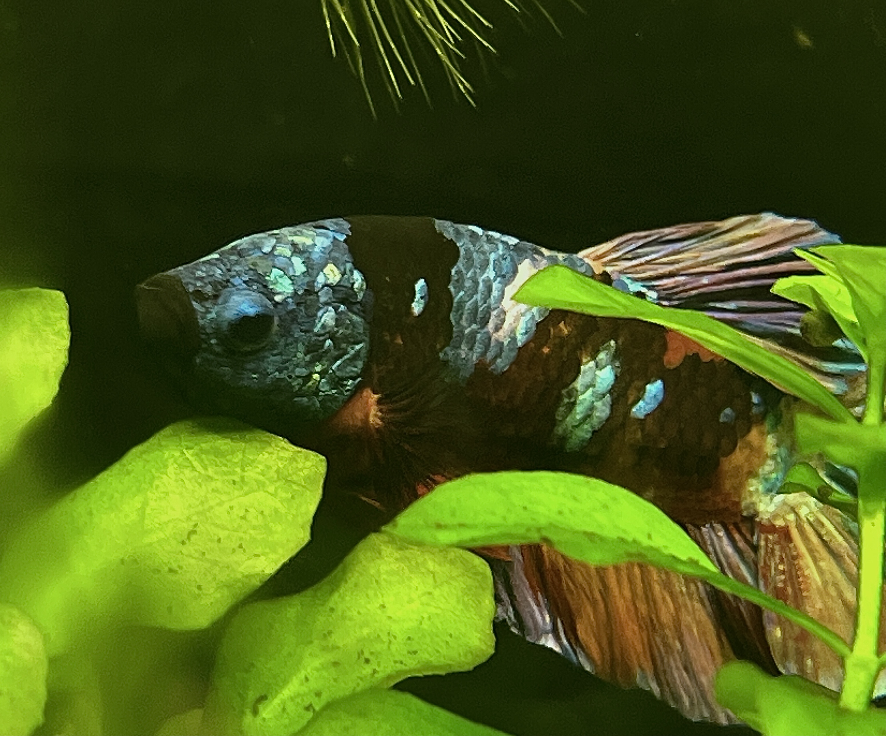A sam rybek jest śmieszny i pocieszny. Tak broni tego swojego akwarium jak skarbu.codziennie patrol antyślimakowy. Szczególnie stroszy się na jednego ze ślimaków, średniej wielkości zatoczka.