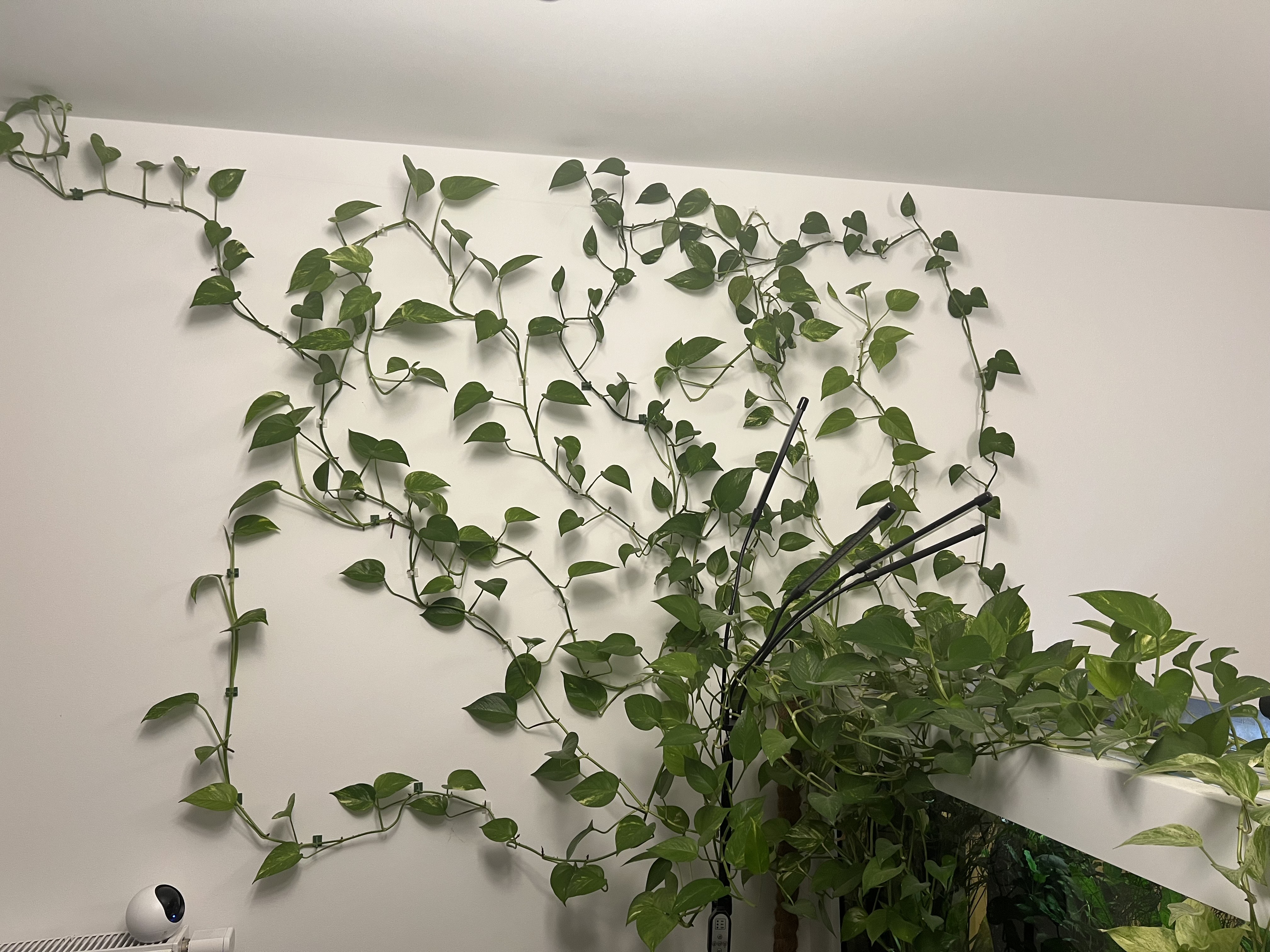 Oczywiście pothos zdobywa ścianę ;) W okresie kwiecień-wrzesień tak rósł, że praktycznie wzrost roślin w akwarium był minimalny lub zatrzymany (za wyjątkiem anubiasa, któremu to nie przeszkadzało). Generalnie nie nawożę, czasami jak nie zapomnę to wleje mikro ale dopiero teraz rośliny w akwa ruszyły.