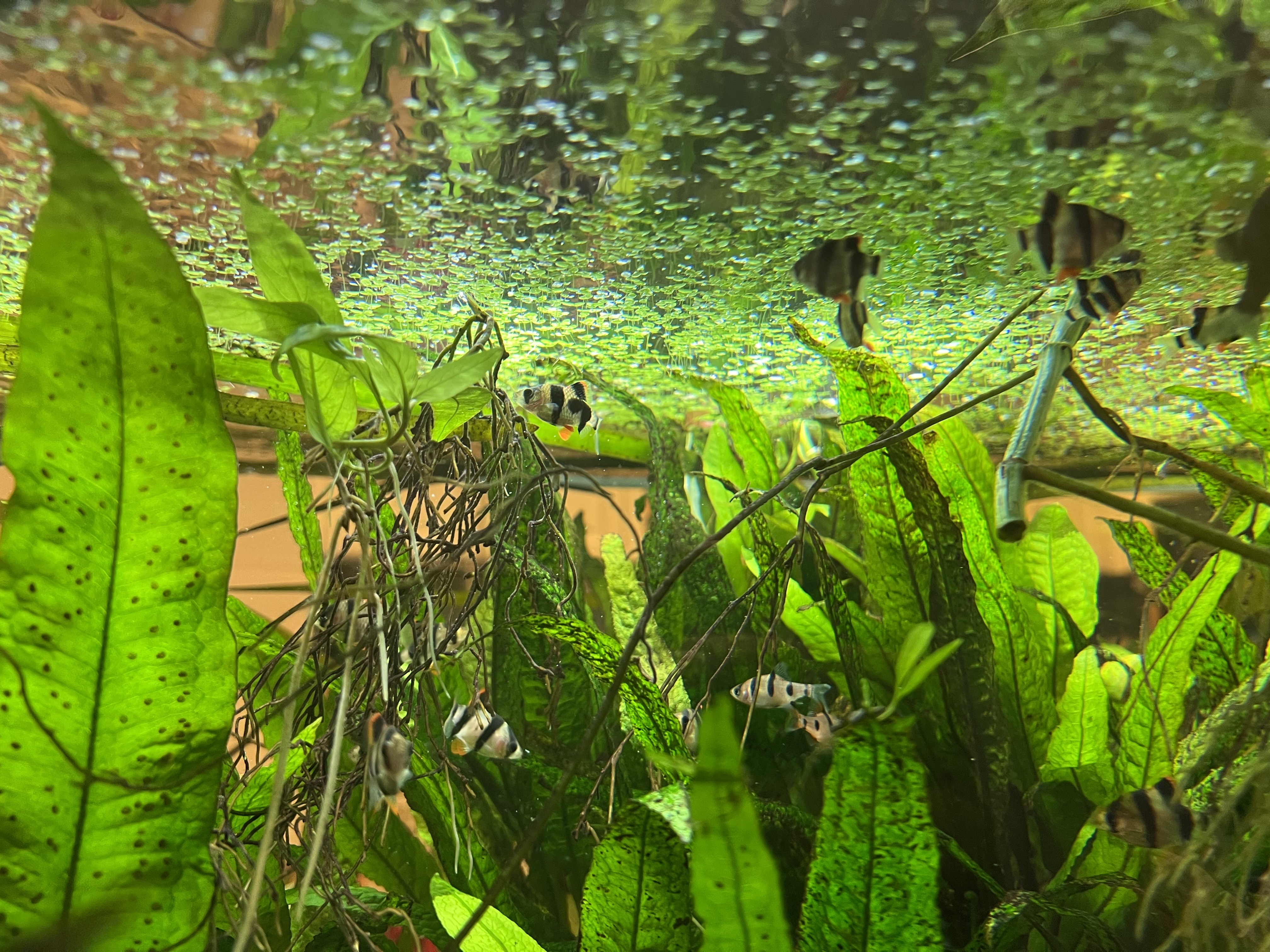 dzięki, zaczyna mi się podobać, zwłaszcza hydroponika, pothosy maja 15m2 ściany do zdobycia! :D min. 10 Wielkopletwow przetrwało z tarla, niektóre już się nie boją i wypływają poza strefę rogatkowa. Mam drugi zbiornik I następnym razem bede przenosić narybek.