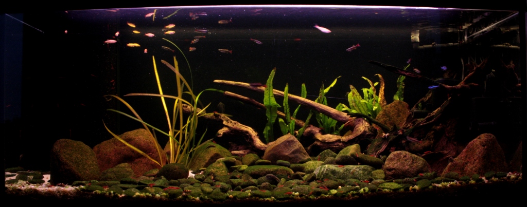 Nie miałem aspiracji, by było to akwarium biotopowe, chciałem po prostu stworzyć warunki odpowiednie dla posiadanych ryb - woda dobrze natleniona, płynąca szybszym nurtem, kamienne dno dające dużo miejsca na osiadanie glonów - główne miejsce żerowania większości planowanych ryb.