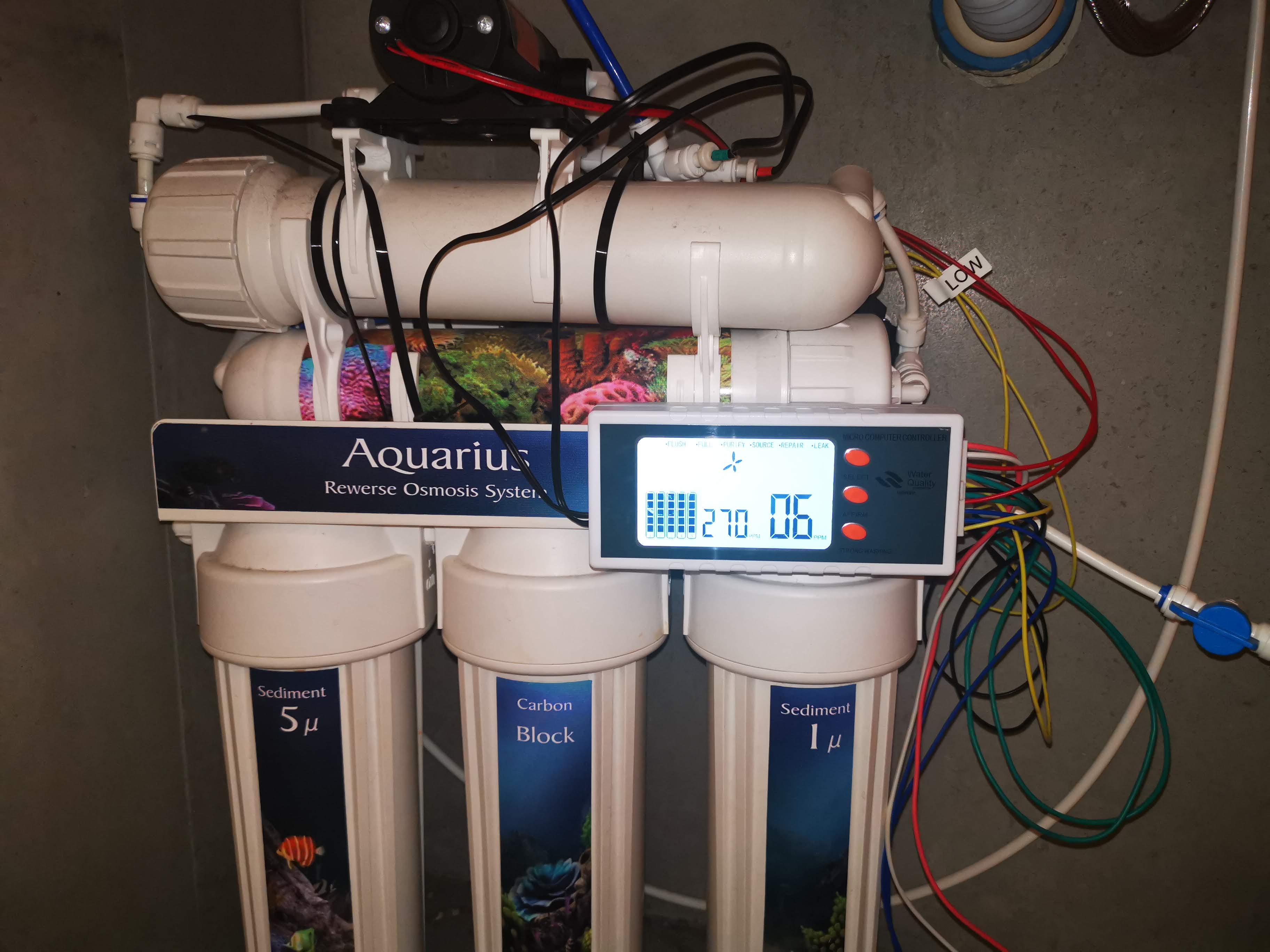 oraz hit sezonu (jak dla mnie) - sterownik do filtra RO - pokazuje ppmy na wejściu i wyjściu, zarządza płukaniem membran, zasilaniem pompy, elektrozaworami, jako tako zużyciem prefiltrów (na oko), i wyłączeniem całego zestawu w momencie napełnienia zbiornika (nie ciśnieniowego!). I jeszcze sprawdza czy ciśnienie wystarczające do pracy jest (w razie zamkniętego kurka na dopływie)