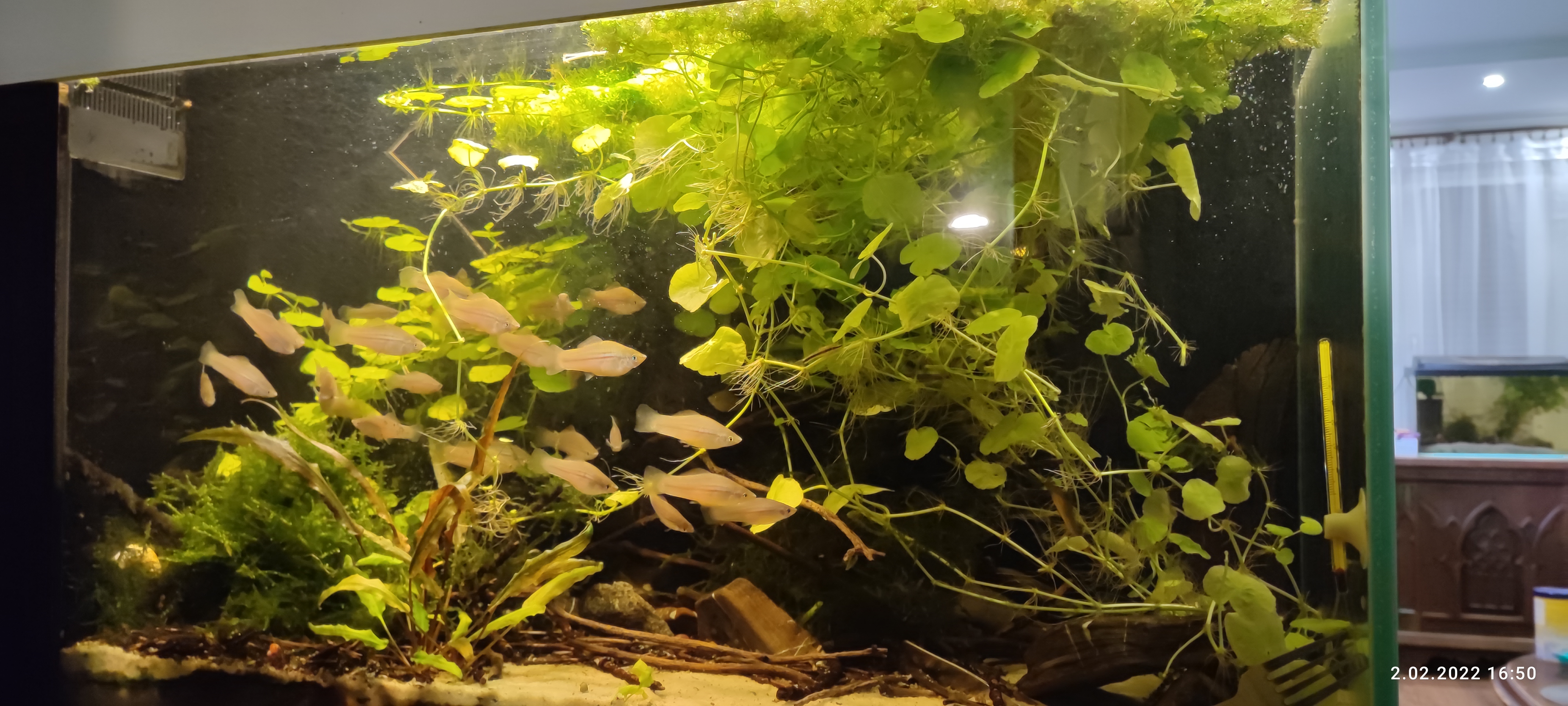 Ja mam głównie małe ryby. Galaxiaki, Amandy, pozostałości gupików. One dostają kurtynę bananowców-zwykle 1x na dobę, czasem 2 albo wcale. Jak jestem na wyjeździe to post nawet tydzień lub więcej. Największe ryby to u mnie kirysy (albinos i pstre-pamietasz @boro1 ?). One z kolei szamią opadłe bananowce, mrożoną ochotkę i szklankę. Do tego na pro defence, czosnek, Kirysek i kilka innych suchych.