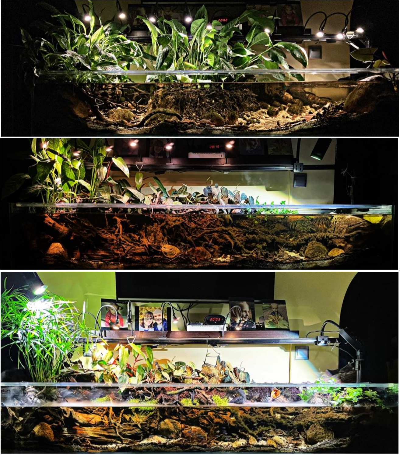 Kosmetyka, ale uporządkowane. Zmieniłem światło. Wróciłem do starych belek LED nad częścią nadwodną. Pod wodą więcej przestrzeni do pływania dla ryb. Wyżej już nie pójdę, bo szafka mnie ogranicza [emoji6]