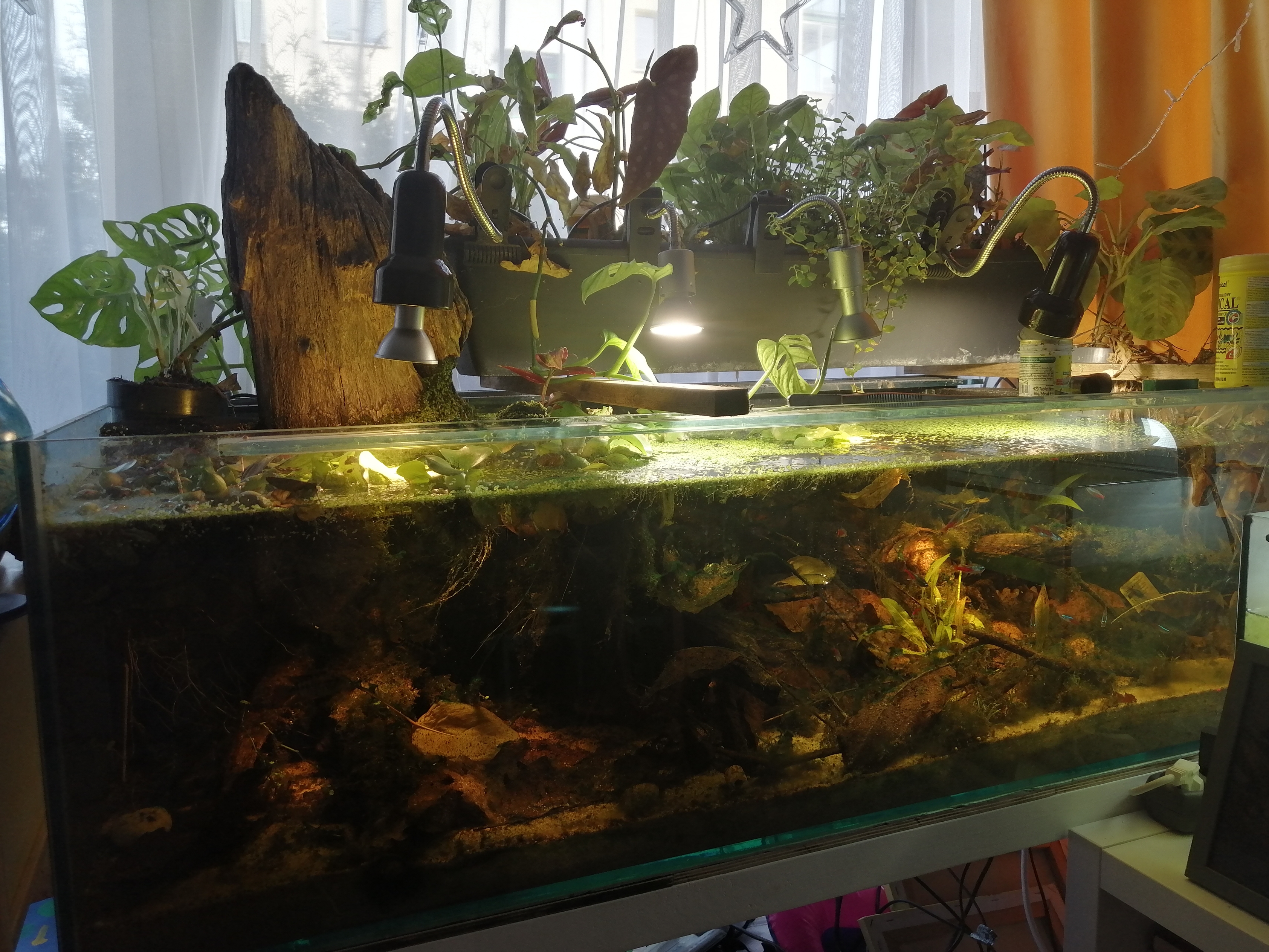 Nad wodą rosną dwie odmiany Maranty i Monstera money mask, dogorywa ją 2 skrzydłokwiaty i Syngonium Areum bo ciągle zapominam ich podlewać...