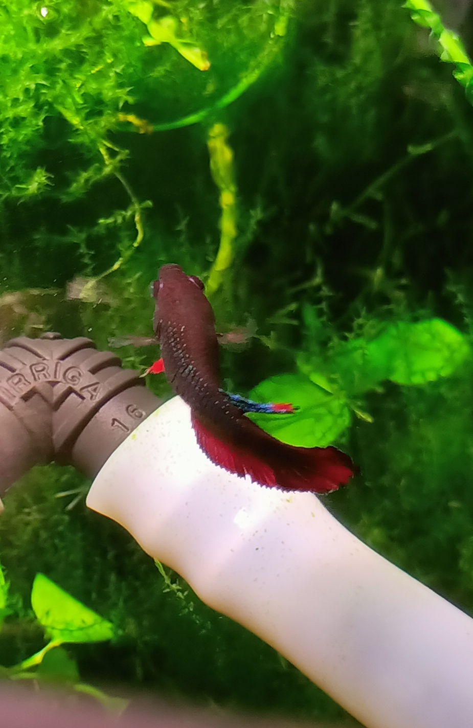 Oto bojownica... Marne zdjęcie bo ona pływa w sumpie więc tyko od góry przez taflę wody ją złapałem... No zrobiła robotę... Chyba że wypławki się zwiedziały... I... Pochowały... Ale póki co ich nie widać... A już na pewno nie ma tak ostentacyjnie pełzających po szybie 😝 😁
