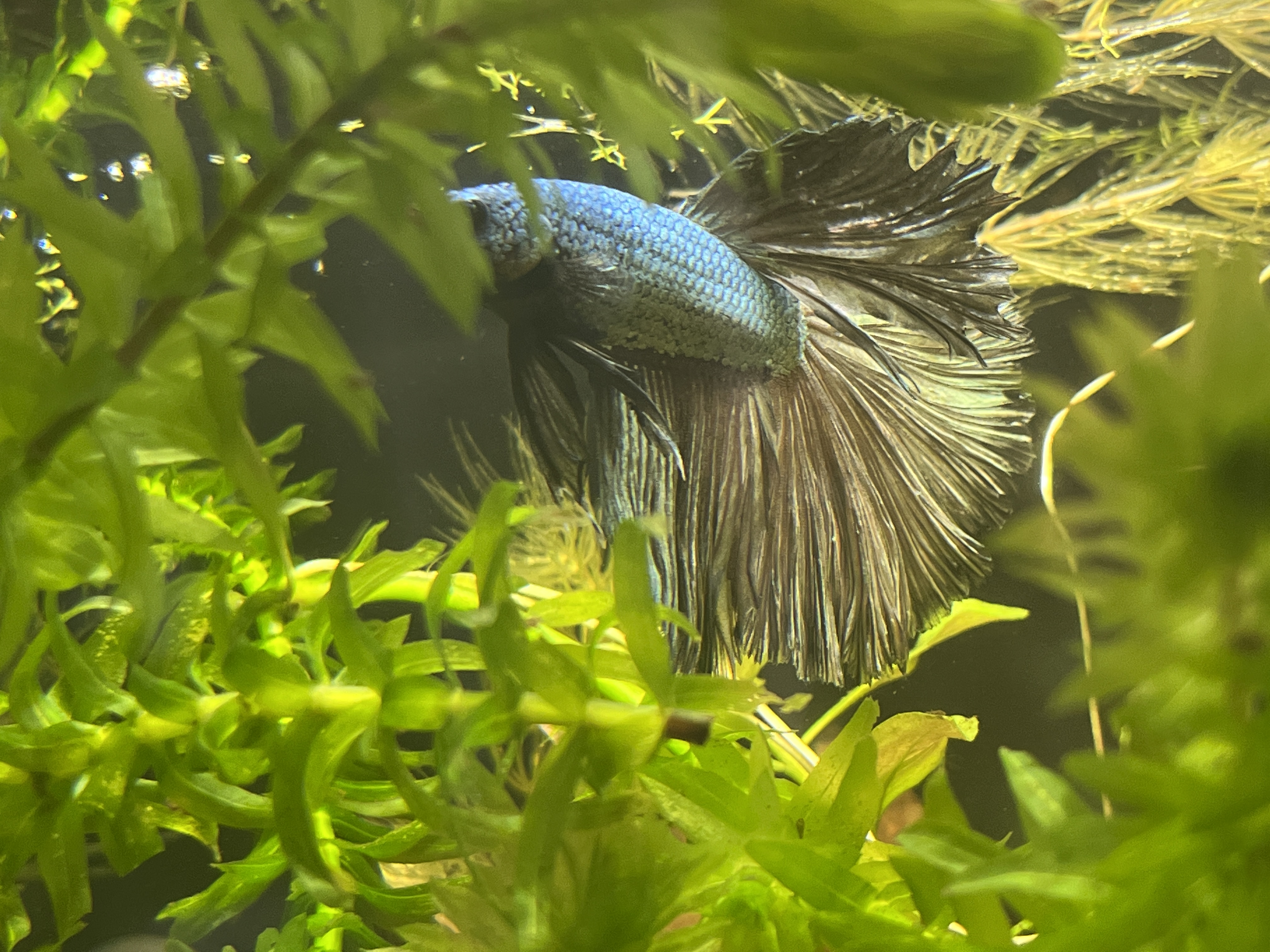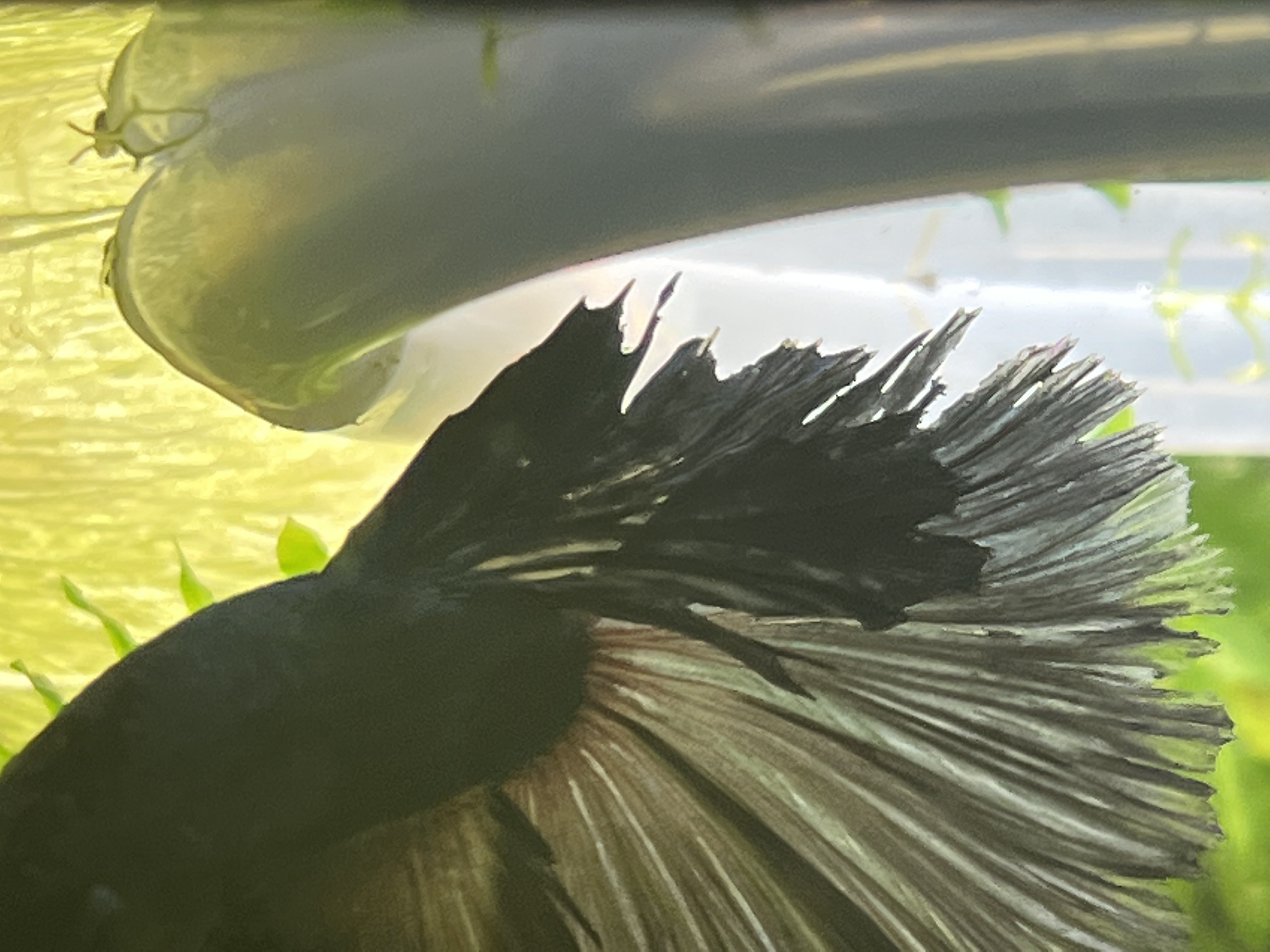 Tu widać, że to są takie połyski na końcówce płetwy (białe na brzuchu to artemia): @DanielP to w takim razie będę obserwowała czujnie. Trzęsę się nad nim okropnie. A myślałam, że żadnego już bojownika po Chojraczku nie pokocham