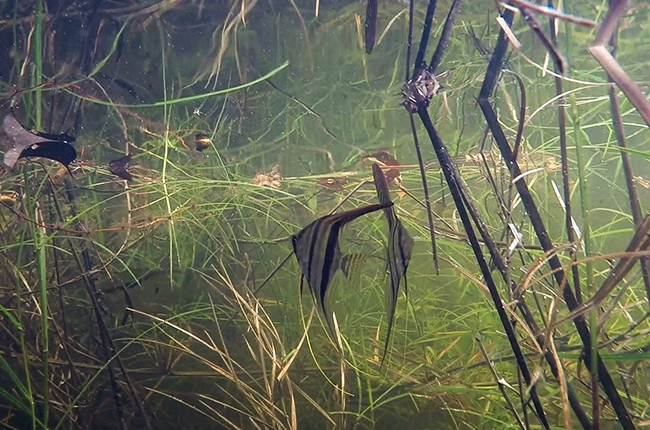 Dzikie Altumy w ich naturalnym środowisku na brazylijskim Rio Negro. Ryby z tej populacji są rzadko spotykane w handlu.