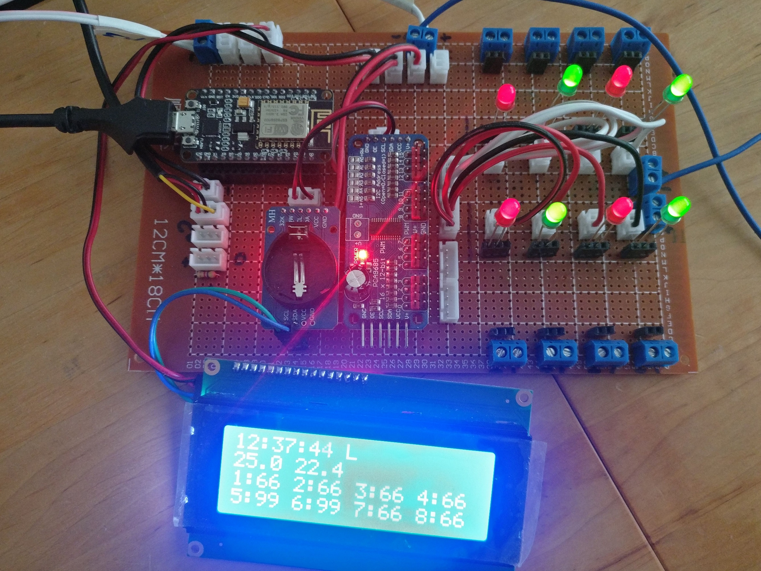ESP8266, RTC, PCA9685, ekranik 4X20