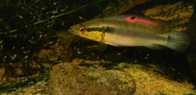 Crenicichla proteus - pielęgnica szczupacza (?) ze względu na swoje agresywne usposobienie nie nadaje się do akwarium towarzyskiego. Jedynie przy dużym zbiorniku długości 200 cm i więcej można spróbować trzymać tę pielęgnicę w towarzystwie dużych pielęgnic i innych dużych gatunków silnych ryb o podobnym usposobieniu. Choć to ryba średnich rozmiarów (dorasta do około 15 cm) w czasie tarła i opieki nad potomstwem potrafi zdominować nawet dużo większych współmieszkańców akwarium. W moim zbiorniku ogólnym gdy crenicichle odchowywały swoje potomstwo, potrafiły tak zdominować pozostałą obsadę, że kilkanaście pielęgnic zajmowało obszar około 50-60 cm a para rodzicielska wodziła narybek na pozostałych 160 cm długości akwarium. Natomiast polecam hodowlę pojedynczej pary ryb w zbiorniku przeznaczonym wyłącznie do ich dyspozycji. Można wtedy prowadzić bardzo ciekawe obserwacje ich zachowania, w szczególności tarła i opieki nad potomstwem.