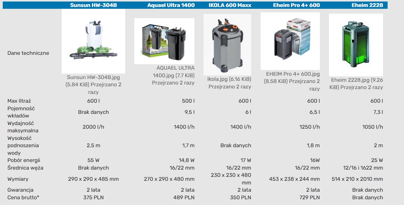 Porównanie filtrów
