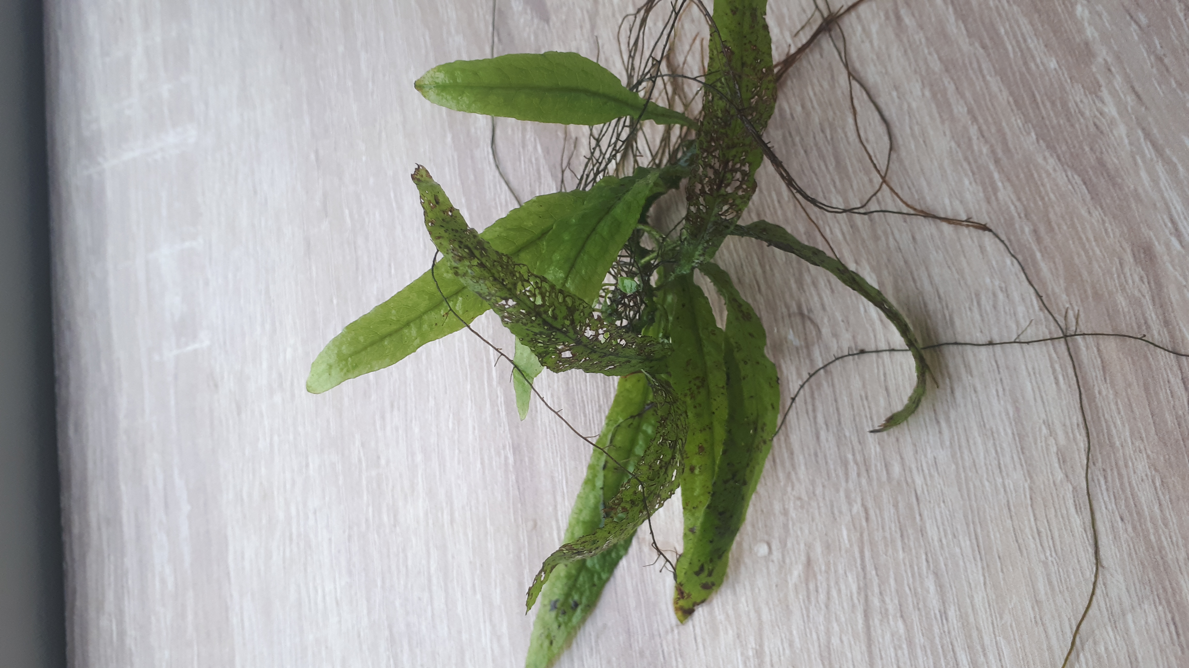 ... microsorium mocno dziurawe.... - a krypcia karbowana widzę że ma tendencje do "skręcania" liści...