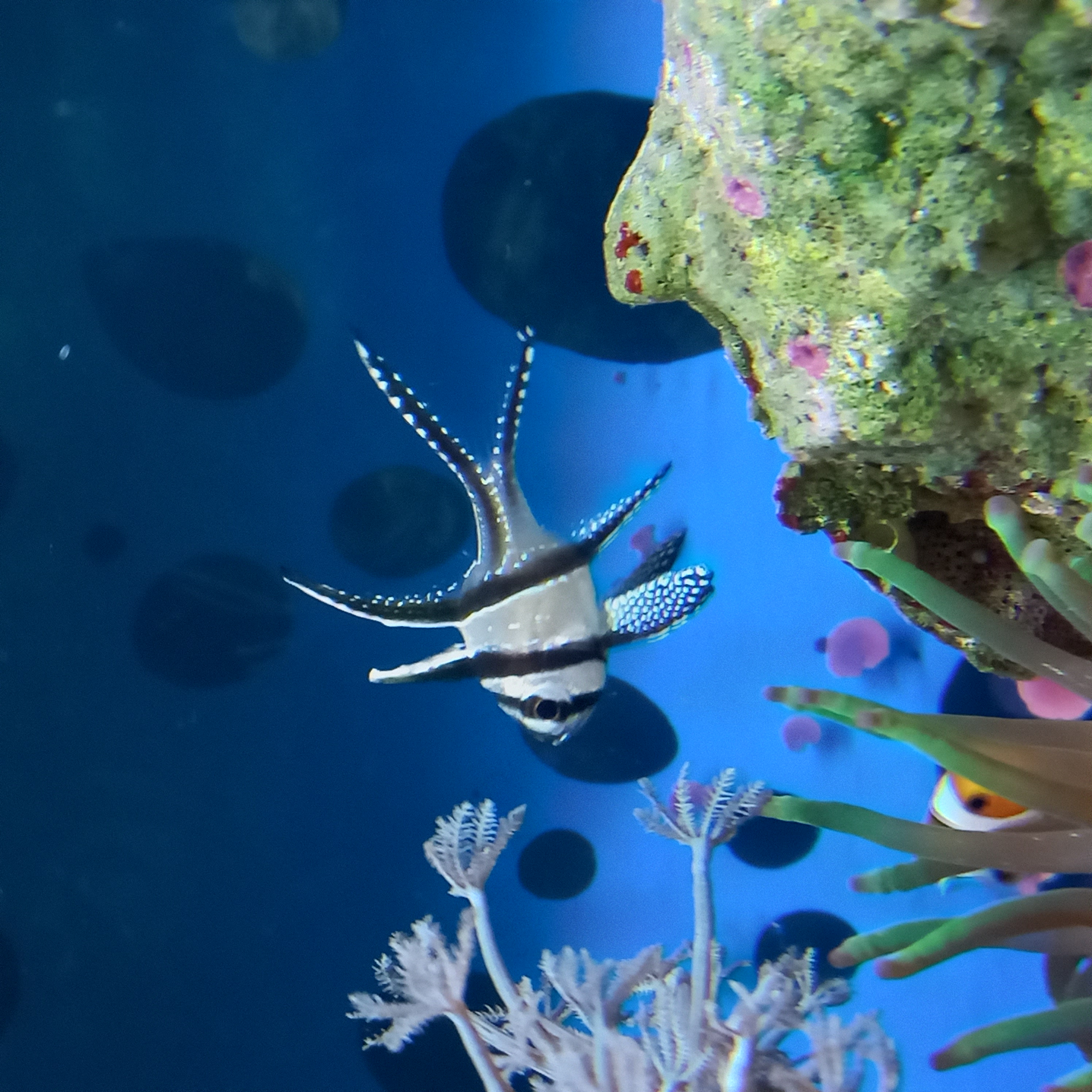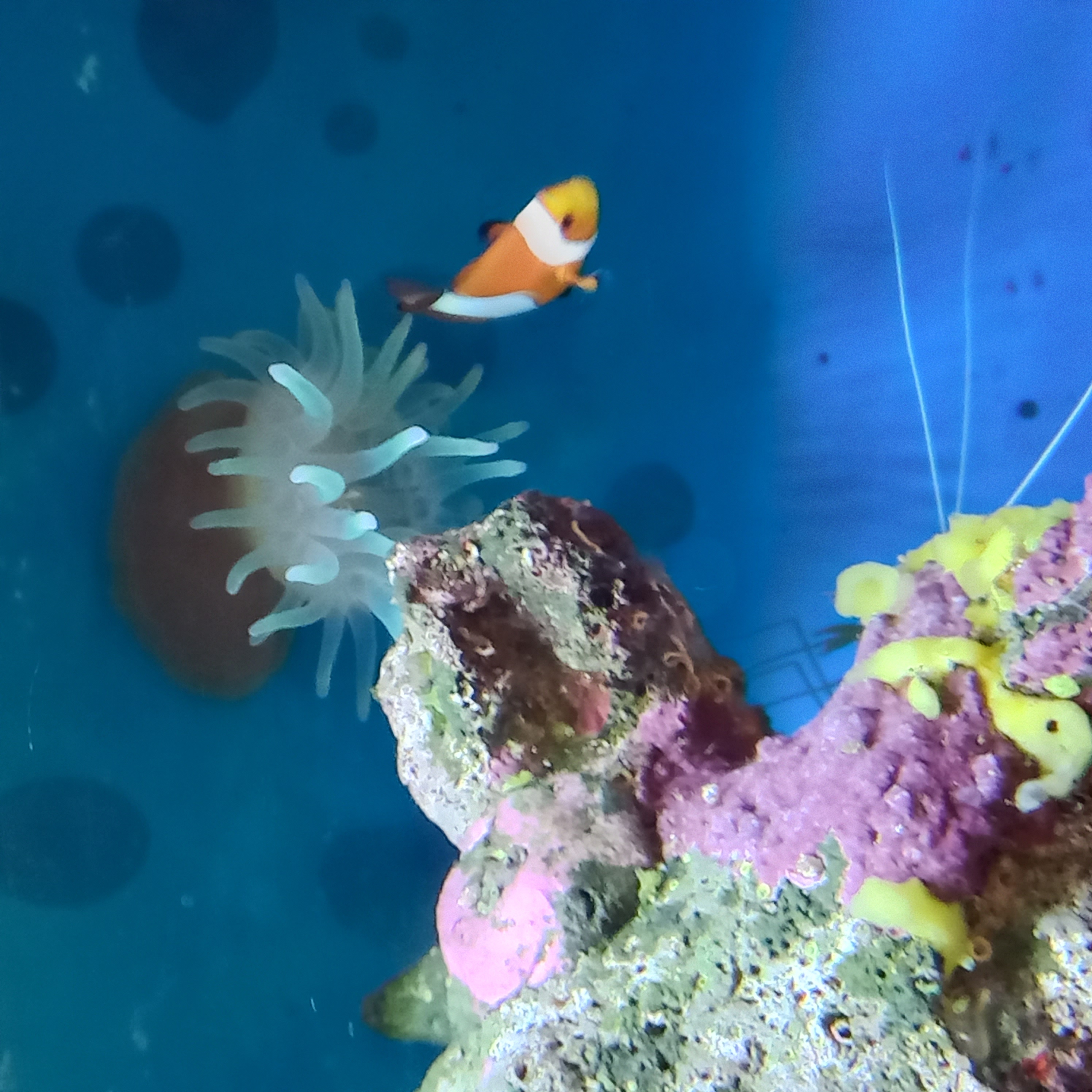 Błazenek coraz częściej fajnie bawią się w ukwiału. Do zbiornika dołączyły Pteropogony.