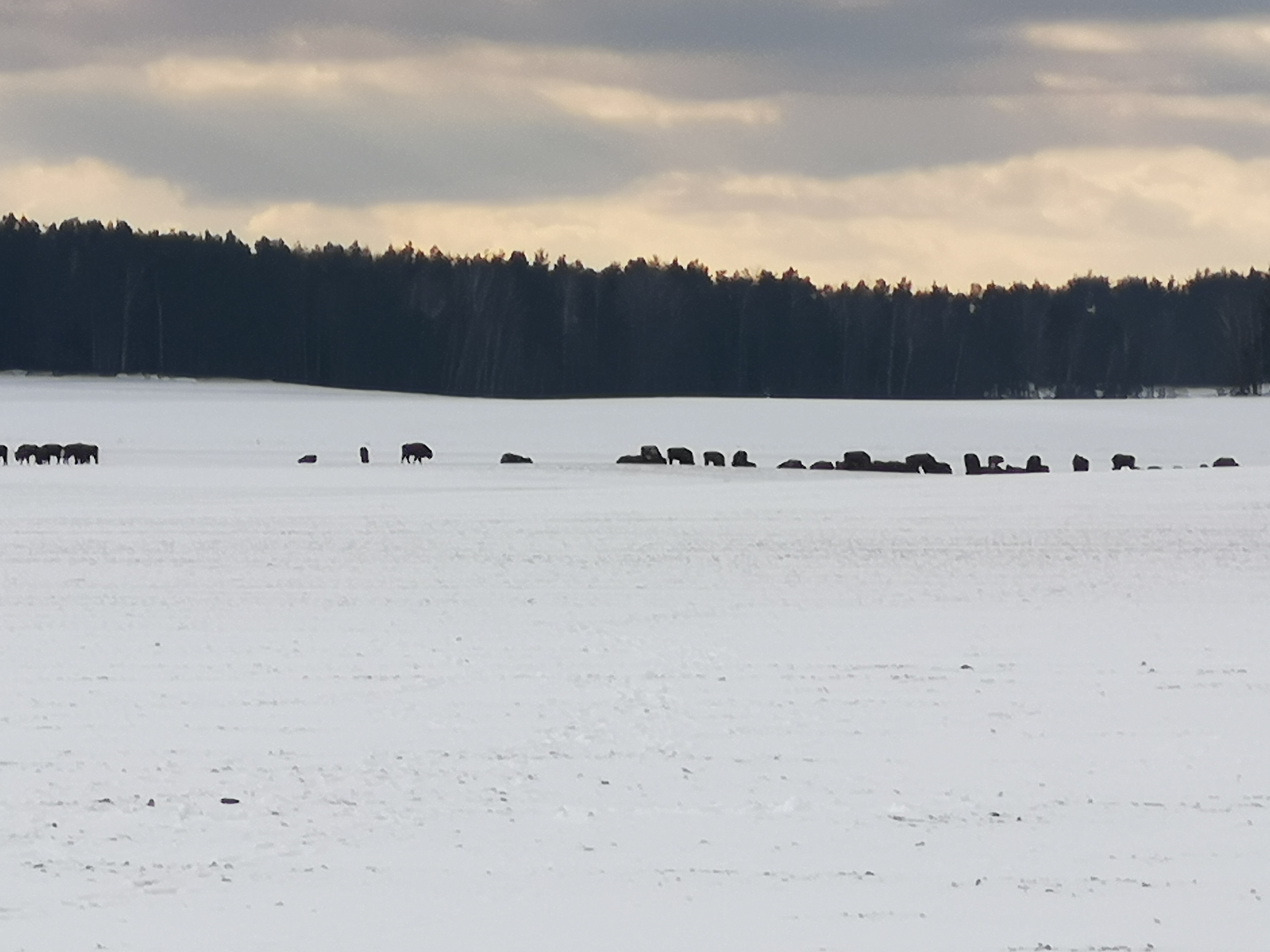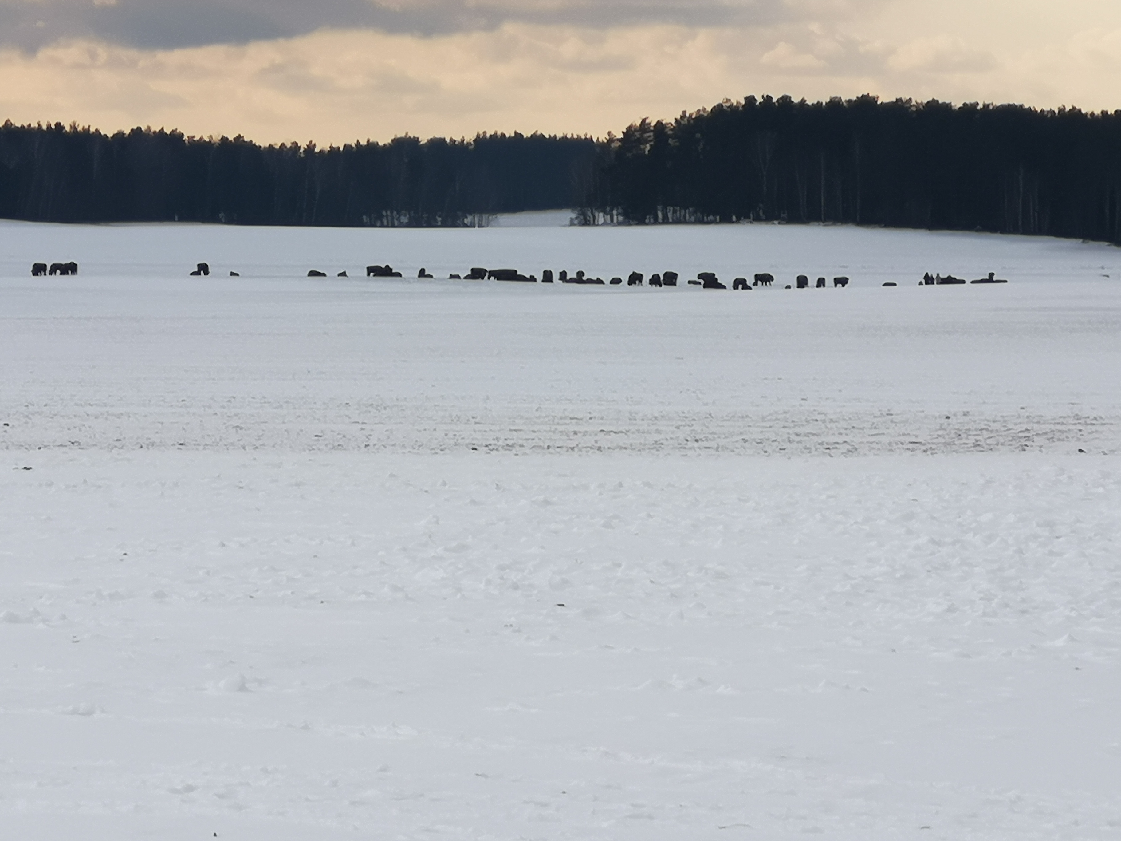 Zdjęcia stada robione z ok 400/500 metrów. Podejść można do 50. W grupie zobaczymy. Sam do 10m. Od żubra