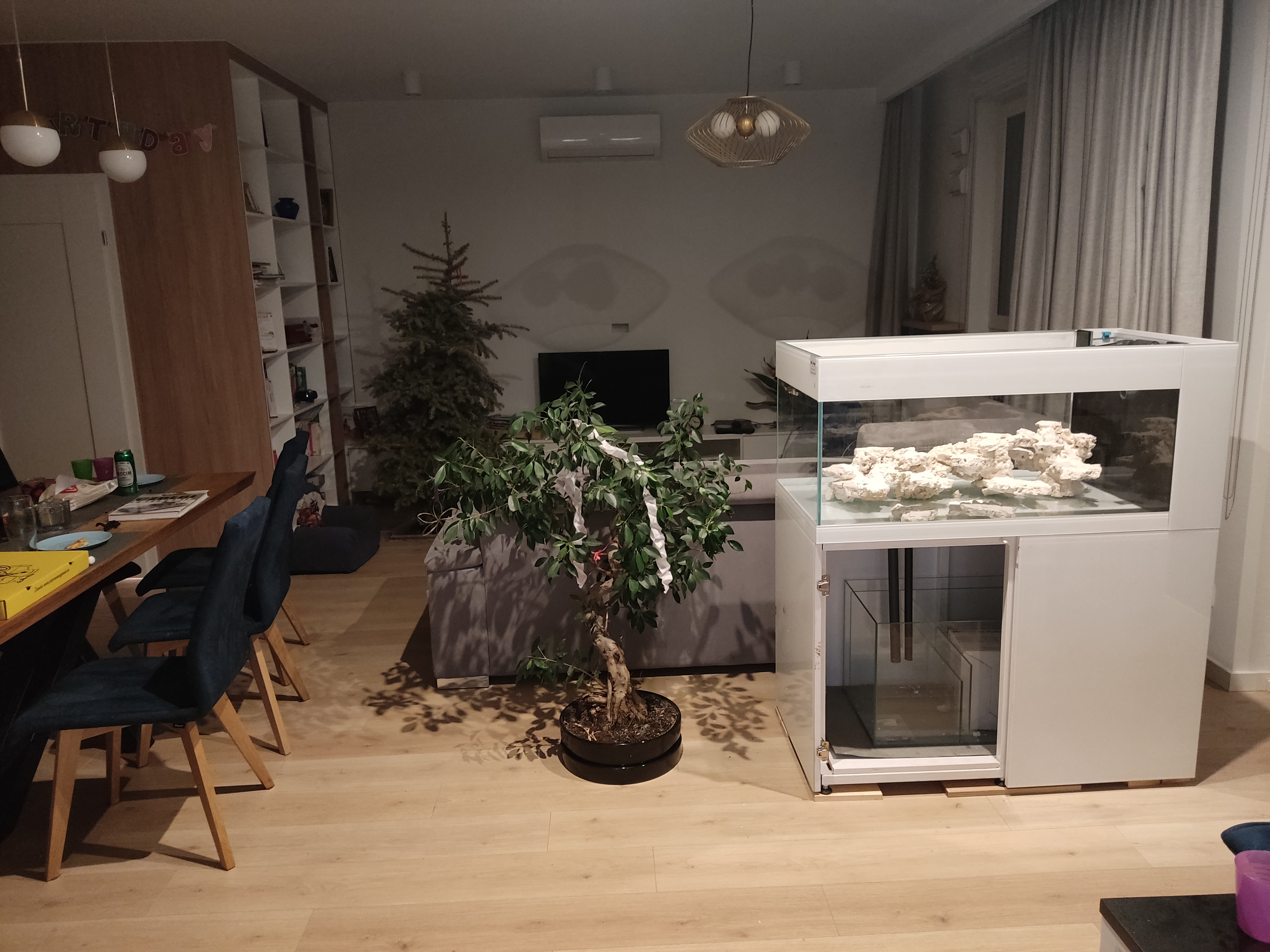 @eva Dzień sądu bardziej wynikał z niewiadomej. Akwarium zamówiłem u koleżki z Lubina na podstawie opinii. Nie widziałem zestawu na żywo i to nieco mnie stresowało. Finalny zestaw przerósł moje oczekiwania gabarytowe. Jest masywny, stąd niepewność co do umiejscowienia.