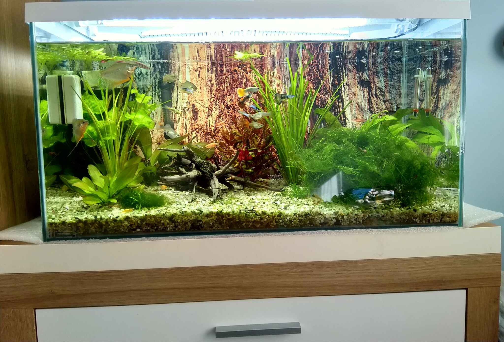 W grudniu 2021 postanowiłem zakupić akwarium 112 l oraz postawić je na komodzie. Wiedziałem, że jest ona zbyt słaba więc zastosowałem drugi blat z pancernego stolika z ilei.