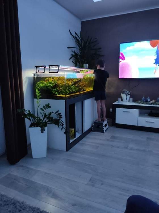Akwarium wystartowałem jakiś rok temu. Stanęło w miejscu 450-ki. Poprzednie akwarium było dla mnie za wysokie mimo że mam 186 cm wzrostu, to i tak przy serwisie mokry byłem po pachy.