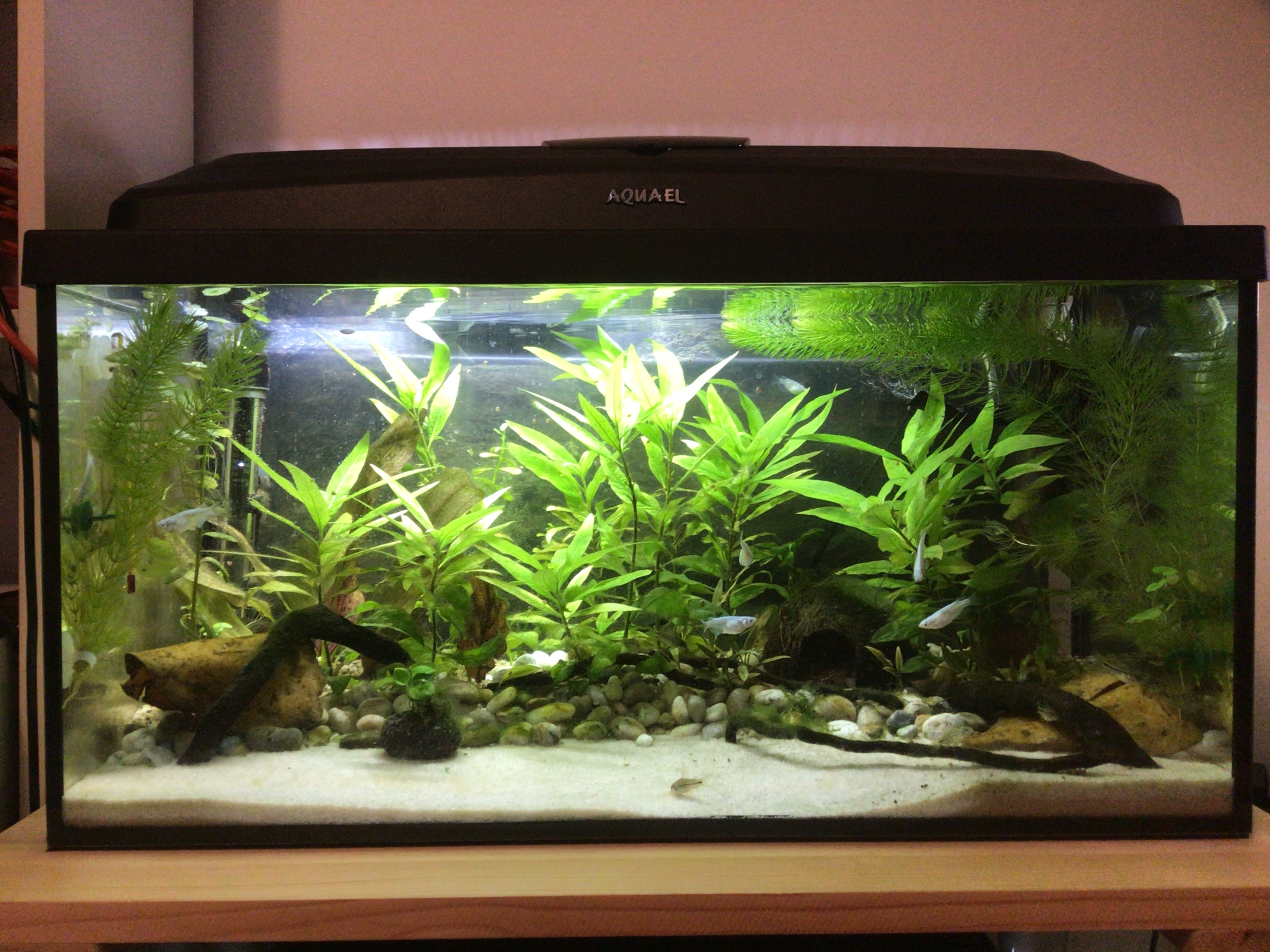 Podłoże: połowa drobny piach, połowa żwirek Aquael z Aquael Aqua Decoris pod spodem. Otoczaki.