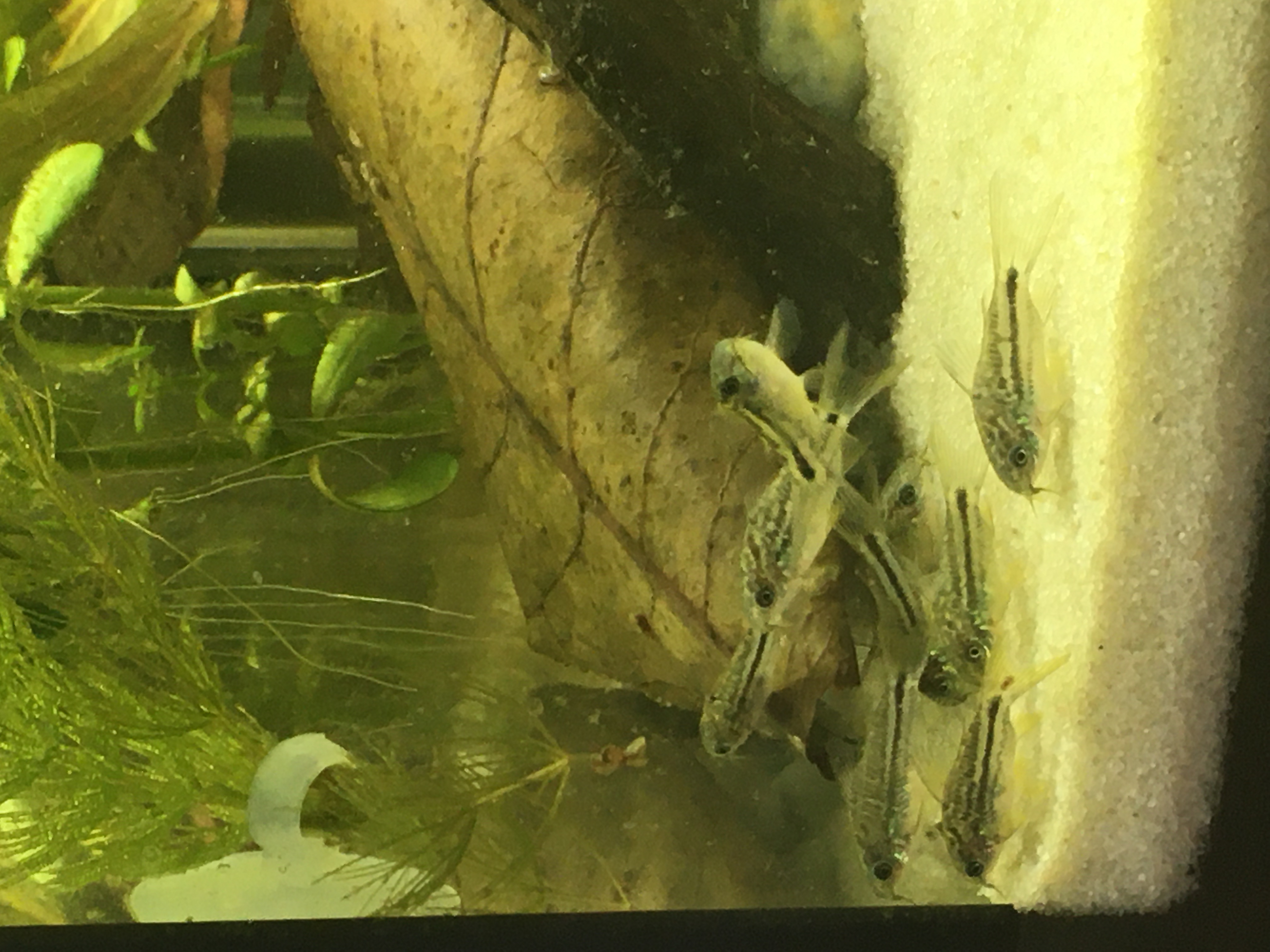 Obecnie, od kilku dni, w akwarium jest jeszcze kotnik z dwoma micro Ryżankami, mają po 2-3 mm, prawie ich nie widać. Raz widzę je w kotniku, raz nie, nie wiem nawet czy może z niego wychodzą i czy są to w ogóle te same rybcie, co kilka dni temu- kotnik ma zbyt rzadką siatkę)