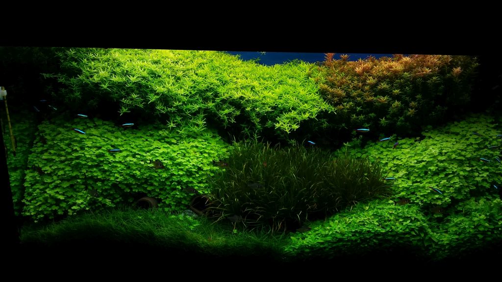 Moje historyczne (nie istniejące już) akwarium w którym stosowałem powyższą metodę. Pod bazaltem (gradacja 1 - 3 mm) znajdowała się 4 cm warstwa ziemi plus kulki GT)