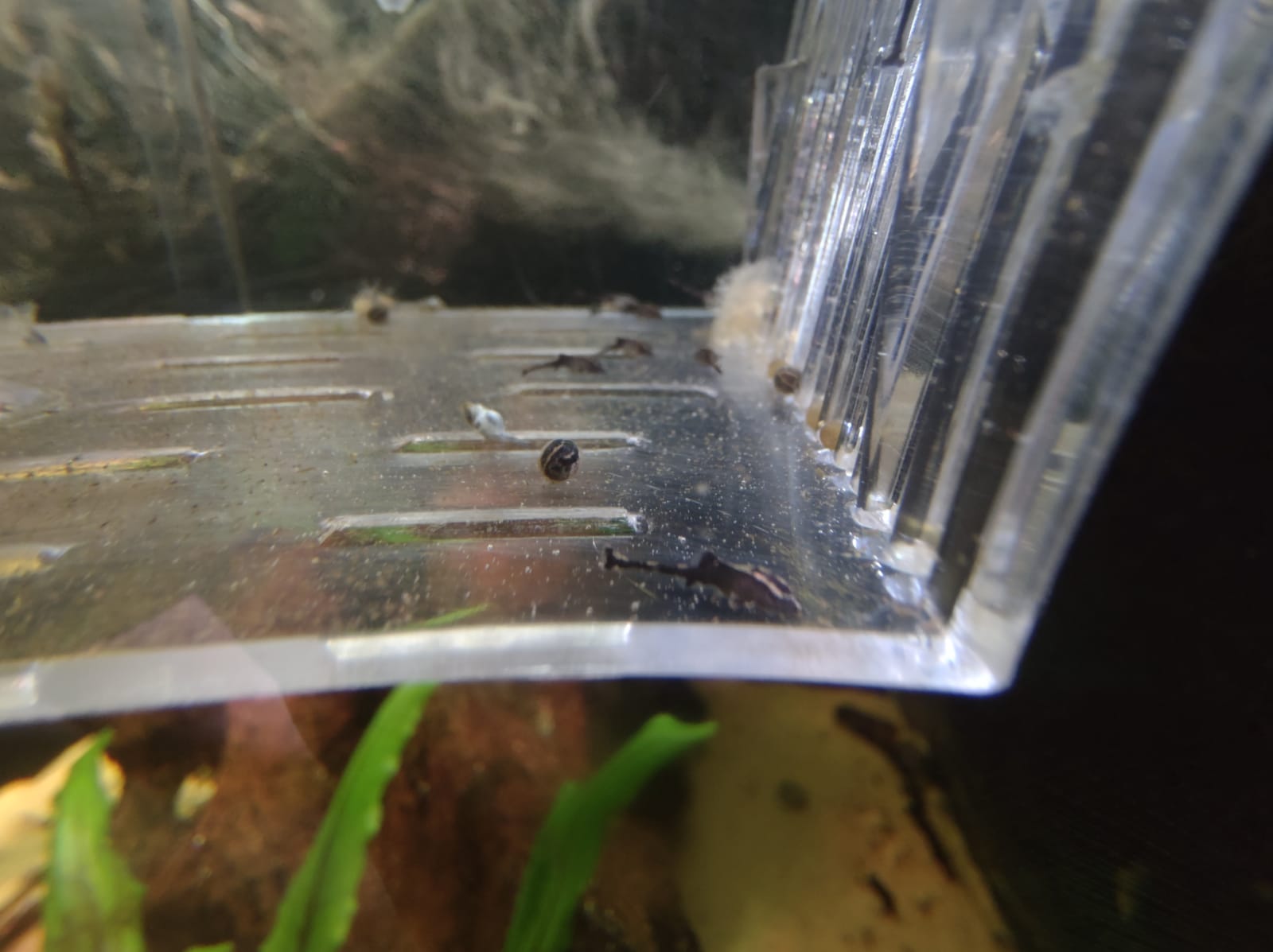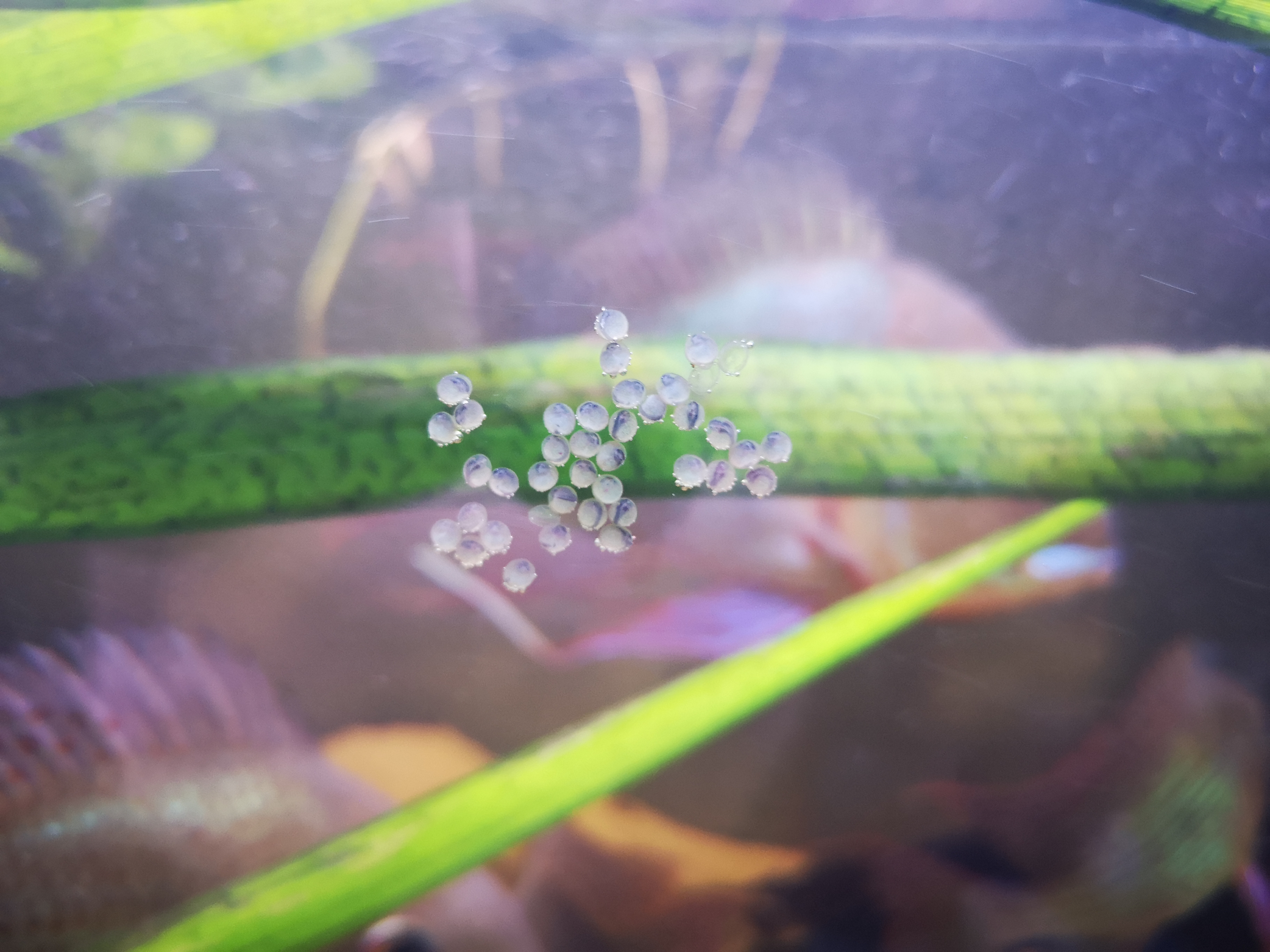 Jeśli podejmiesz próbę odchowu - oddzieel do kotnika + kostka napowietrzająca, po wchłonięciu woreczka żółtkowego podaj spiruline , pokarm młodym, artemie, płatki w ilości niepsujacej wodę.