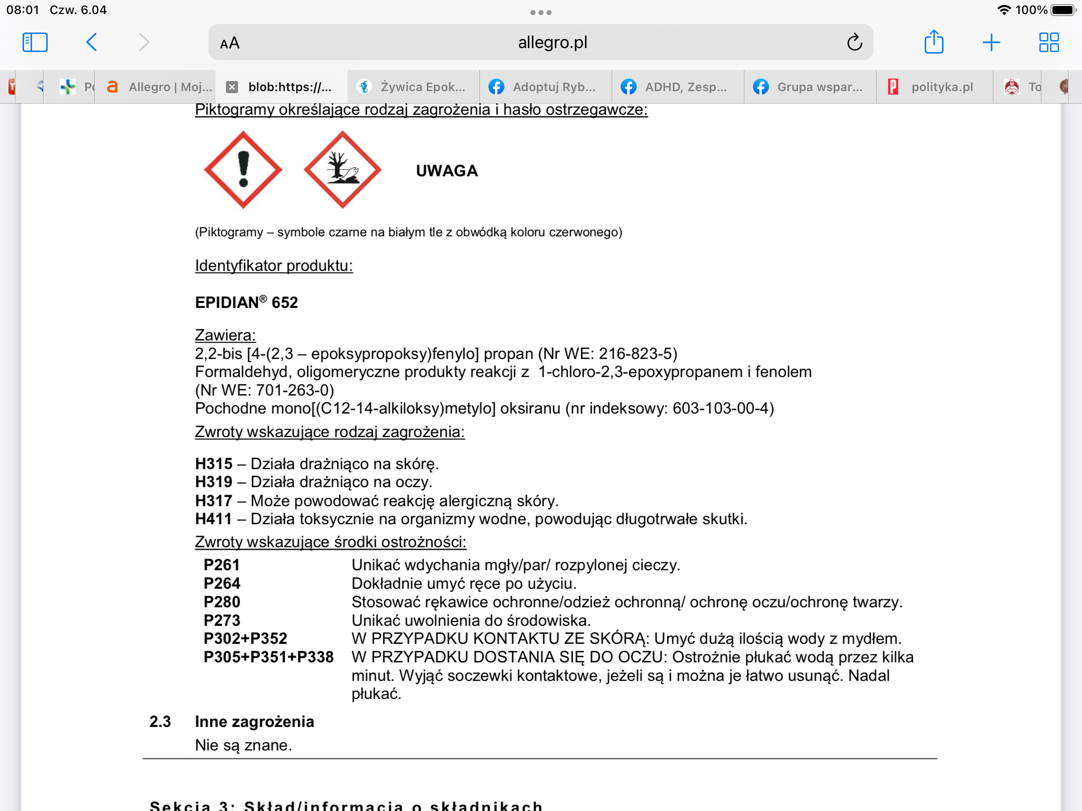 @Poranna Witaj Zmiano poczytałam sobie o ksylenie. Dlaczego myślisz, że może być w żywicy epoksydowej? O ksylenie wspominają w opisie, w temacie czyszczenia.