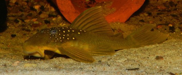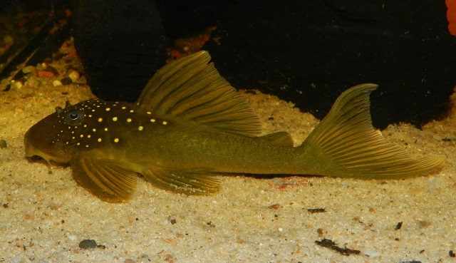 Baryancistrus demantoides i Hemiancistrus subviridis - te dwa zbrojniki u nas w handlu nie są rozróżniane i oba są sprzedawane jako L 200. Różnica polega na wielkości i kształcie płetwy grzbietowej i ogonowej oraz ubarwieniu - jeden jest "bardziej zielony", drugi "bardziej żółty". Z moich obserwacji wynika, że oba gatunki są towarzyskie o spokojnym usposobieniu, nie zauważyłem dużej agresji wewnątrzgatunkowej - jak to zazwyczaj bywa wśród samców zbrojników. Dodatnią cechą L 200 jest to, że są mało płochliwe przez co nie żyją głównie w ukryciu a bardzo dużo czasu spędzają na otwartych przestrzeniach akwarium. Poniżej zdjęcia obu gatunków: