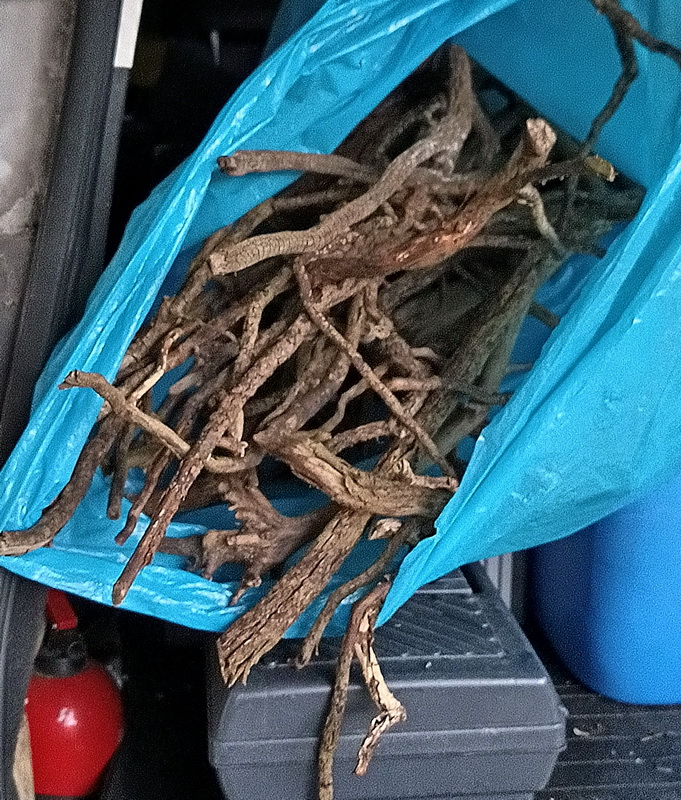 Mała próbka korzeni w standardzie, czyli głównie lilak oraz do żarcia olcha i jabłoń, bo lilak będzie zbyt twardy dla delikatnych ząbków eLek...