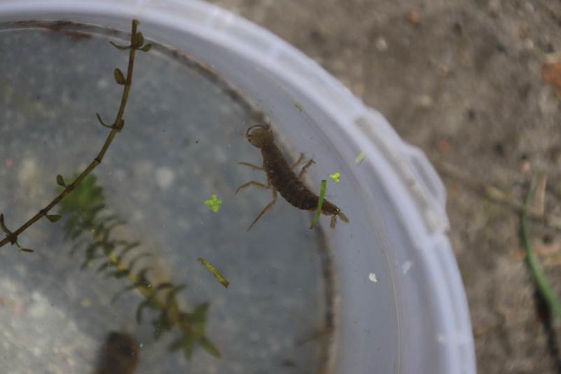 Prosto ze strumienia w Nysie. Jeszcze mała (ze 4 cm), ale żarłoczna jak diabli i mam nadzieję, że nie będzie problemem utrzymać ją przy życiu do wystawy i później. Jutro jakiegoś żywca skombinuję, a na razie w nocy wpierniczyła już małego gupikoendlera. Fascynujące stworzenie, choć może być przekleństwem w akwarium, jeśli się w porę nie zauważy. To drugi egzemplarz w mojej karierze. Pierwszy (dorosły chrząszcz) wziął się i utopił... Serio, wlazł pod kamień i utknął.