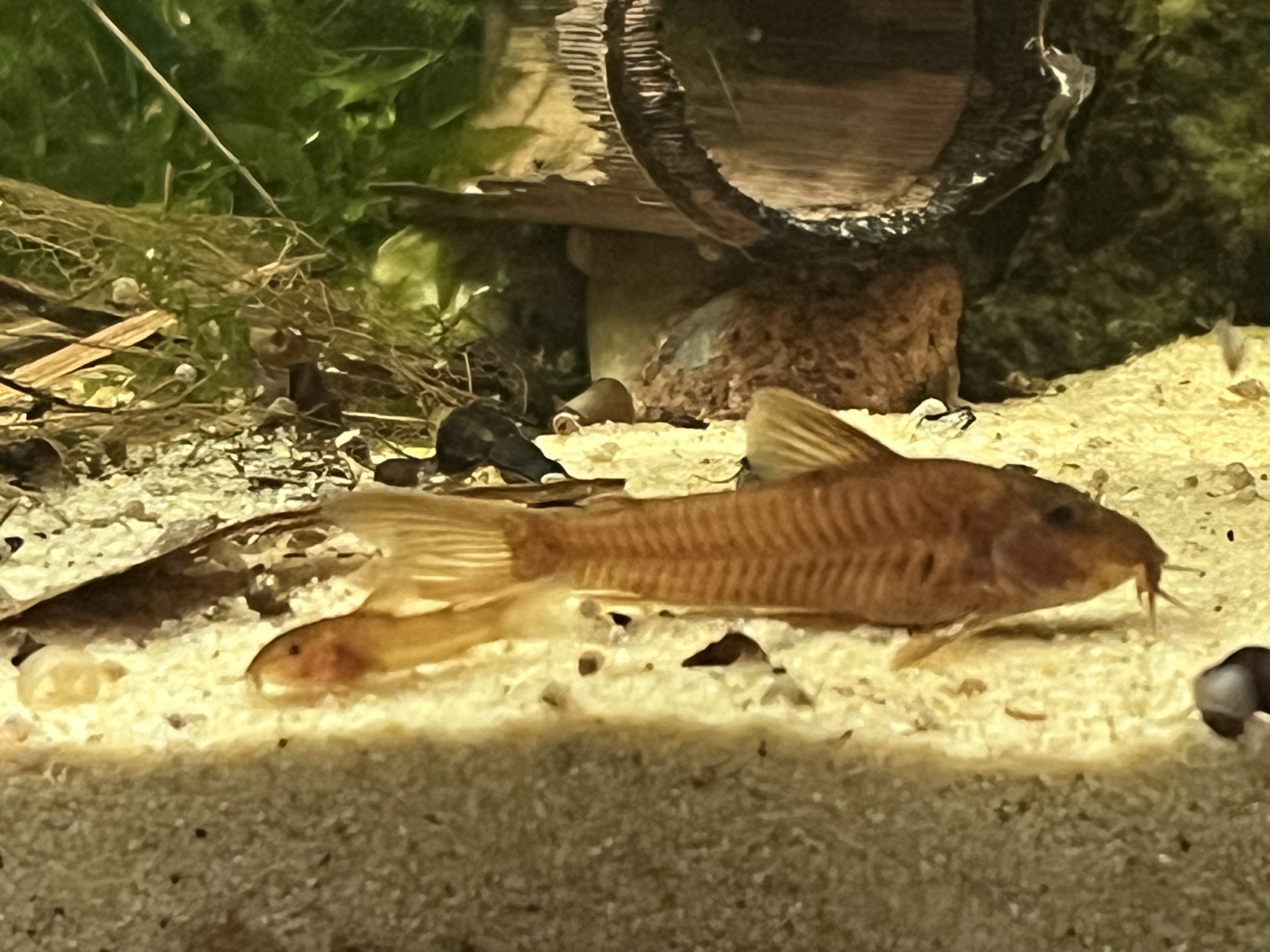 Jeden urósł. Widzę jeszcze takie pojedyncze średnie, ale niestety nie wszystkie przeżywają. Chyba nic ich nie zjada, więc nie wiem dlaczego. Sypię pokarm mikro i non stop wykluwam artemię dla tych, które są już wystarczająco duże żeby ją zjeść.