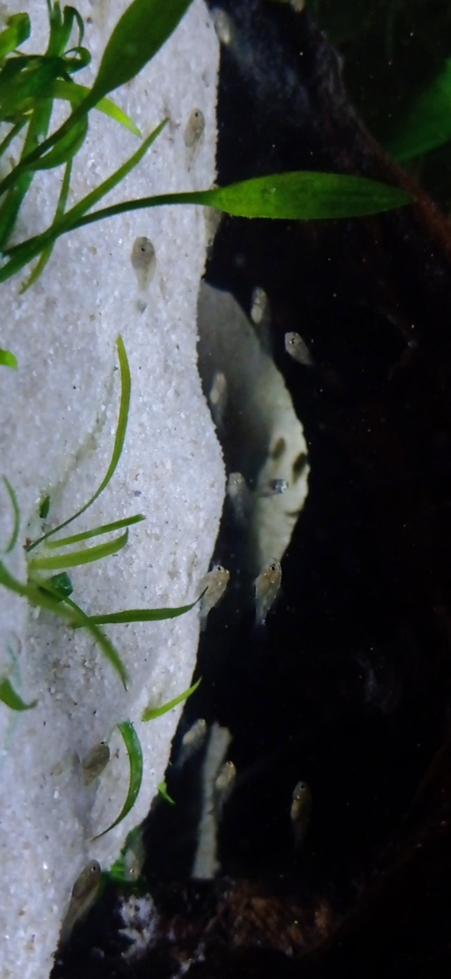 Pierwsze tarło u mnie ryby mają już za sobą. Miało ono miejsce 19 maja. Dziś tj. 11 dnia od tarła samica pierwszy raz wypuściła z pyska młode: