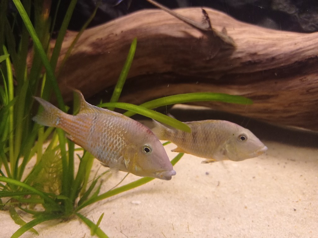 Geophagus steindachneri to przepiękny ziemiojad, który zamieszkuje wody Kolumbii i Wenezueli. Samce osiągają około 15 cm długości natomiast samice są nieco mniejsze. Samce są intensywniej ubarwione,mają wydłużoną końcówkę płetwy grzbietowej i charakterystyczny czerwony garb. Jego wielkość zależna jest od rozkładu płci i hierarchii w stadzie. Są to ryby dość odporne jeżeli chodzi o parametry wody. Optymalna będzie średnio twarda woda o temperaturze ok 25 stopni C. Poniżej młode ryby z początku grudnia 2020 roku.