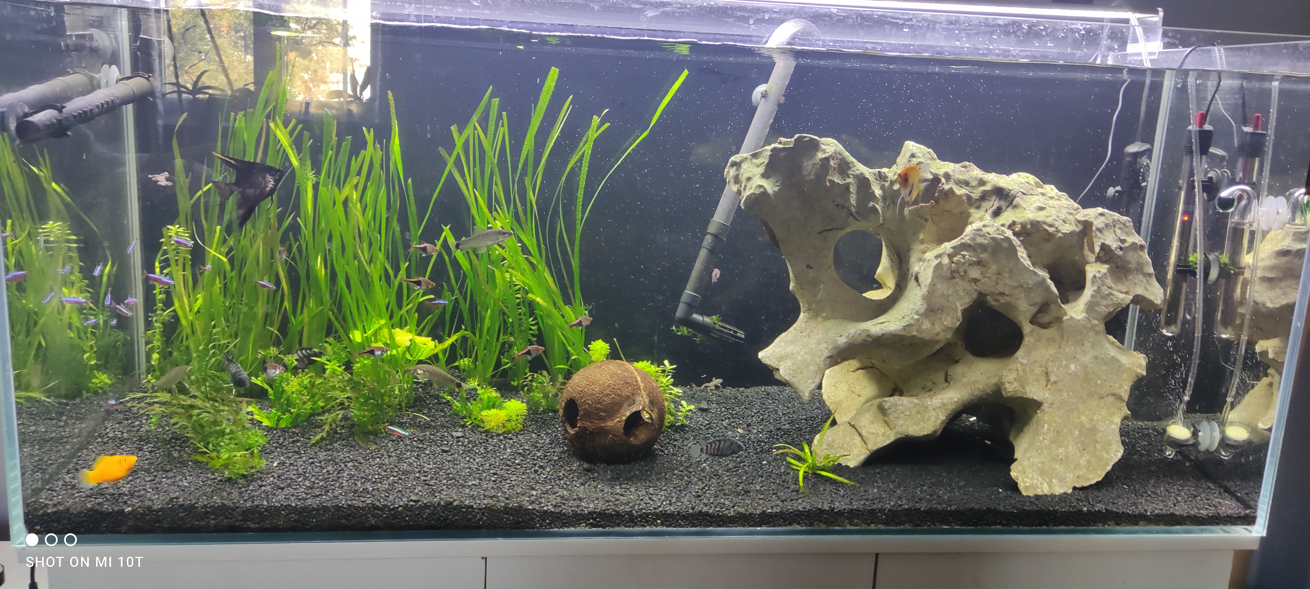 Narazie jest idealnie. Wiem, że później będę musiał mu zrobić jakas miejscówkę , na spokojnie. Narazie nie będę przechodził na Malawi bądź tanganike , potrzymam jeszcze trochę ogólne , podszkole się w tym temacie i jak będę robił drugie to przeniose tam ogólne a do tego 240 Malawi. Dobra. Jak trzeba to trzeba , wyjmuje kamień , sadze dużo roślin bo już warunki mam dosyć dobre , robię dżunglę i niech się dzieje wola nieba 🥺