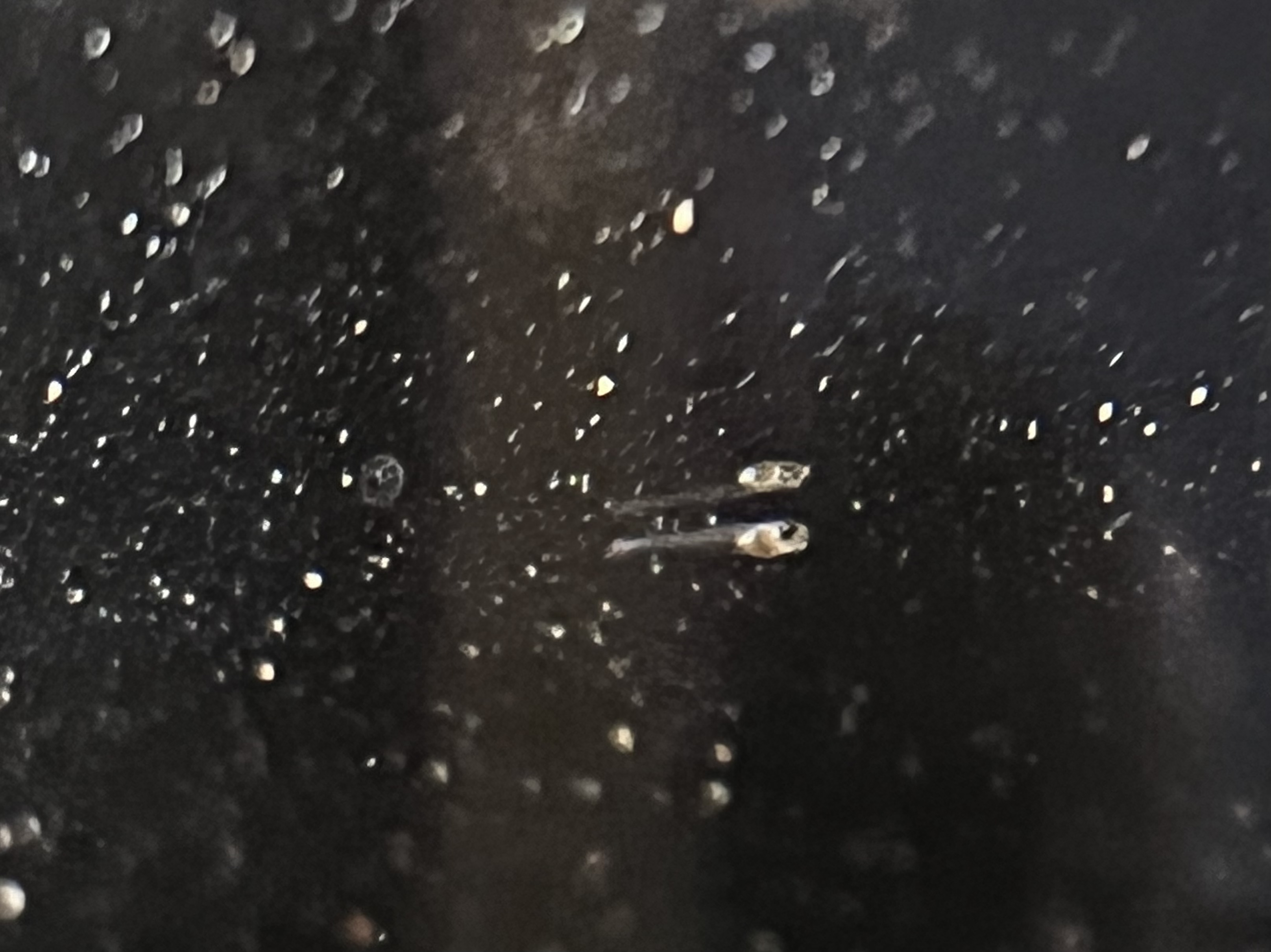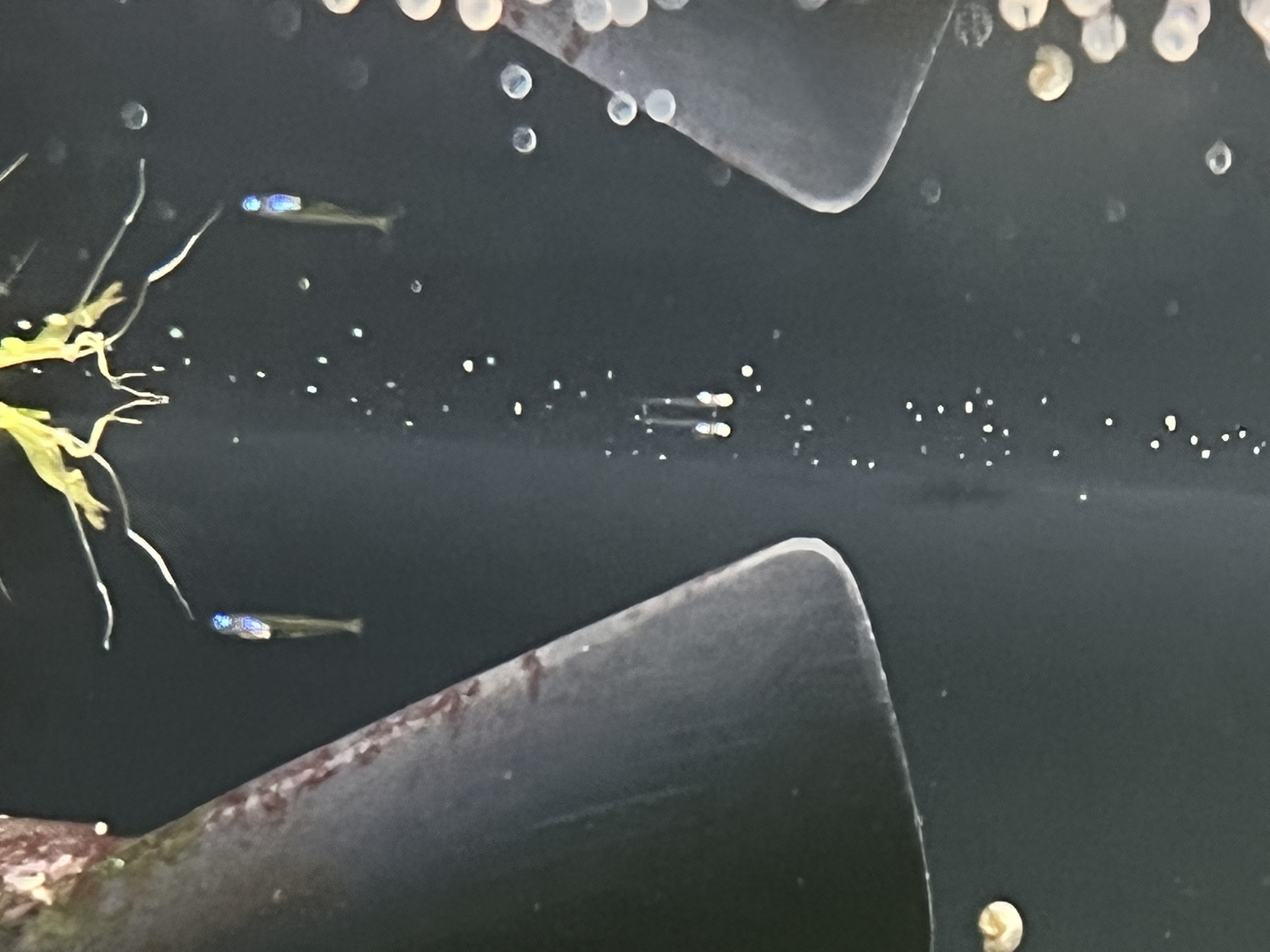 Oby go najstarszy brat nie zeżarł. Pseudomugile pierwsze dni po wykluciu nie są zbyt ruchliwe. Przemieszczają się powoli po tafli wody. Przestraszone potrafią uskoczyć. Nie niepokojone tak sobie tkwią. Na początku nie mają błękitnych oczu. Są miedziane, oczka srebrno-czarne. Z każdym dniem ruchliwość wzrasta, a oczy robię się neonowo niebieskie. Minęło 21 dni od oddania rodziców. To chyba ostatni tydzień na wylęg jaj, gdyby jakieś się jeszcze namyśliło