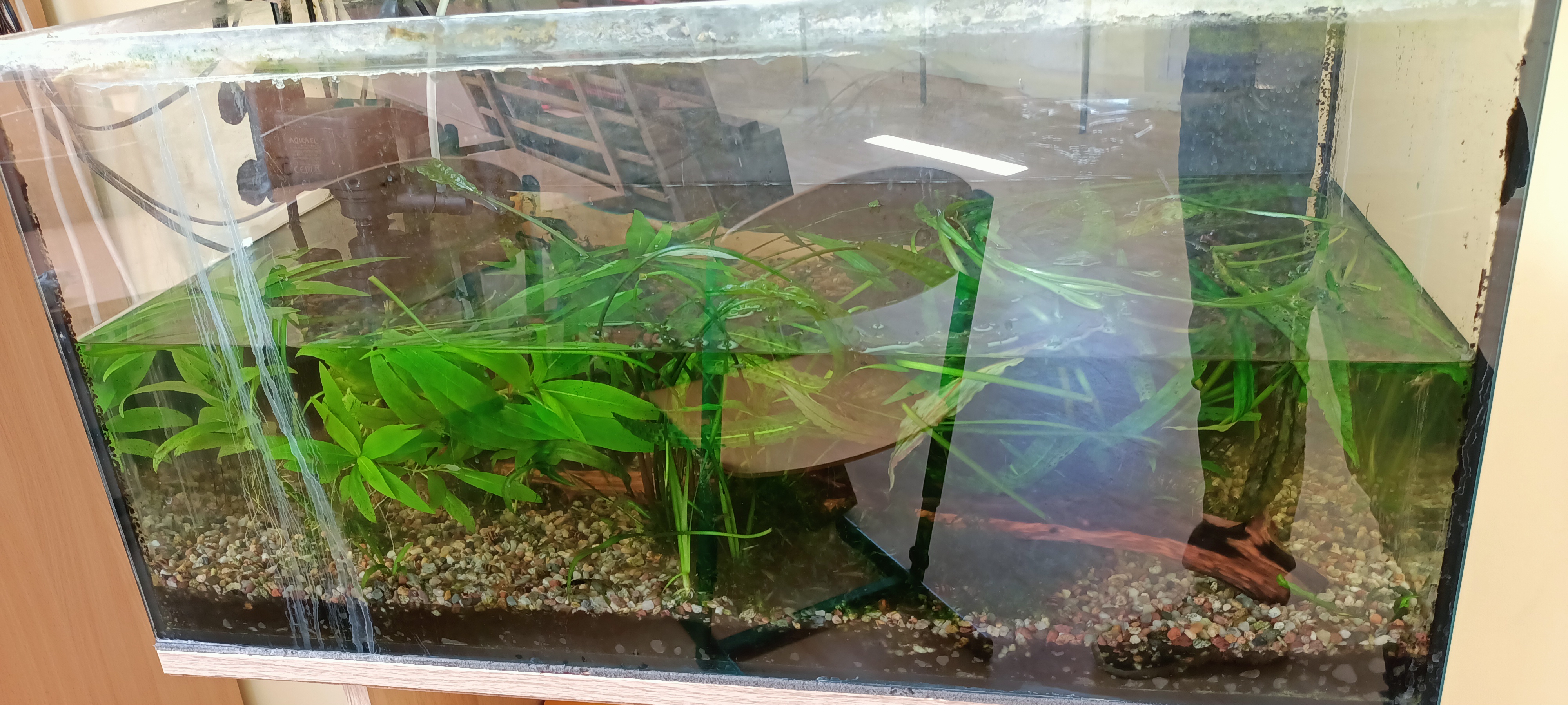 Marne zdjęcie, bo szyba brudna i do tego tuż po podmianie wody, więc dużo pęcherzyków powietrza w toni.