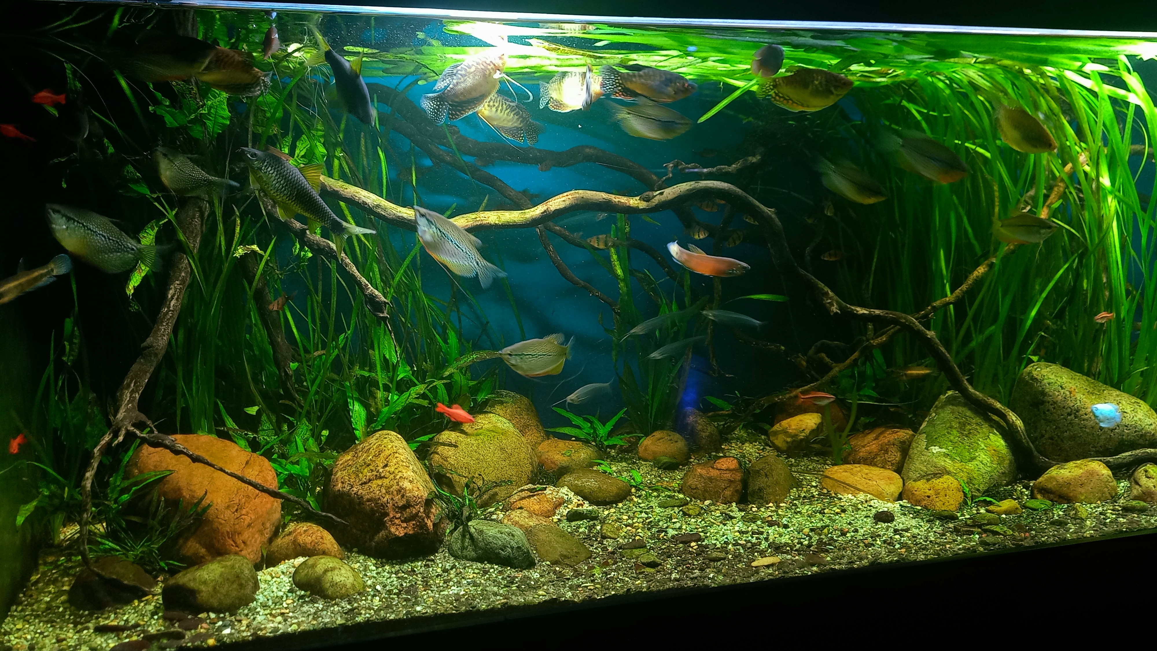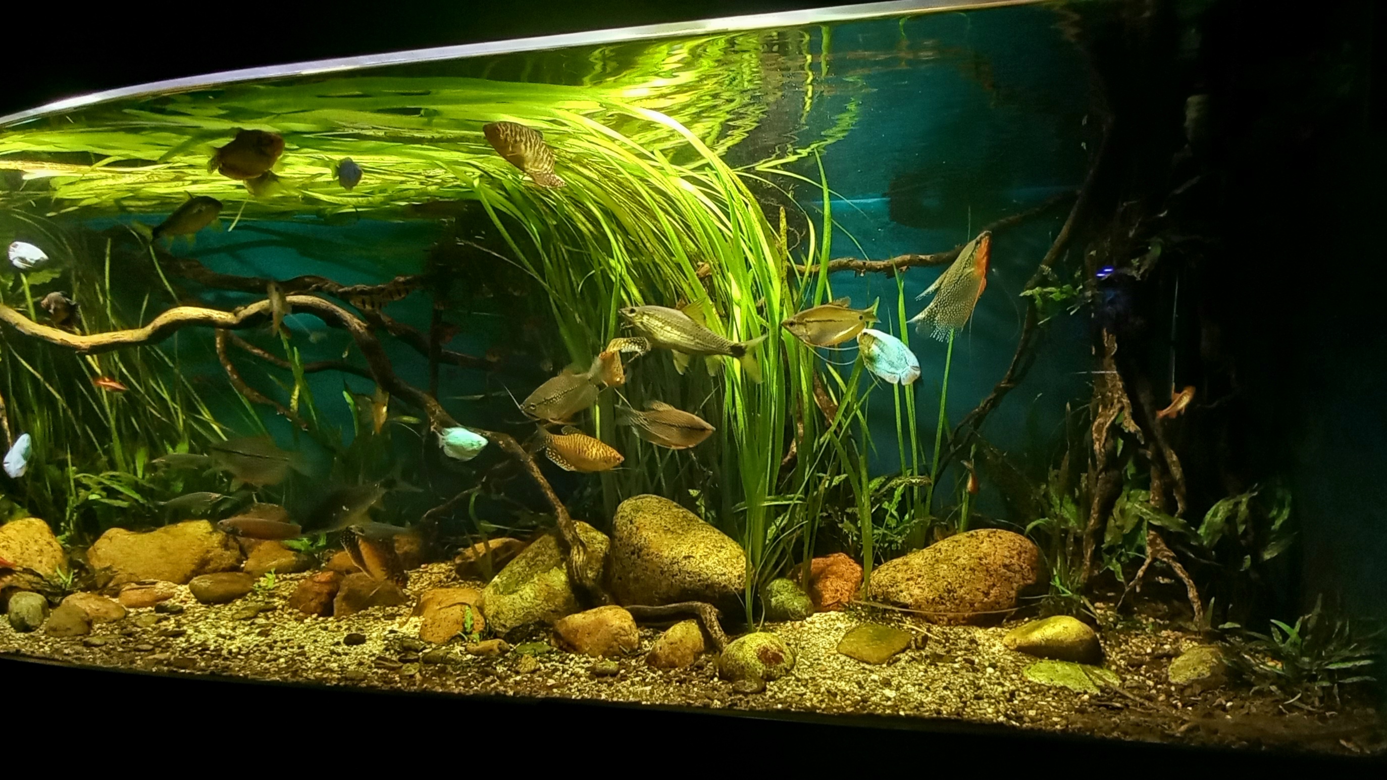 Lżejszy aranż mi się póki co podoba... chociaż mniejsze zarośnięcie to mniej miejsca na ukrycie... co źle się niestety skończyło dla grupki skrzeczyków karłowatych