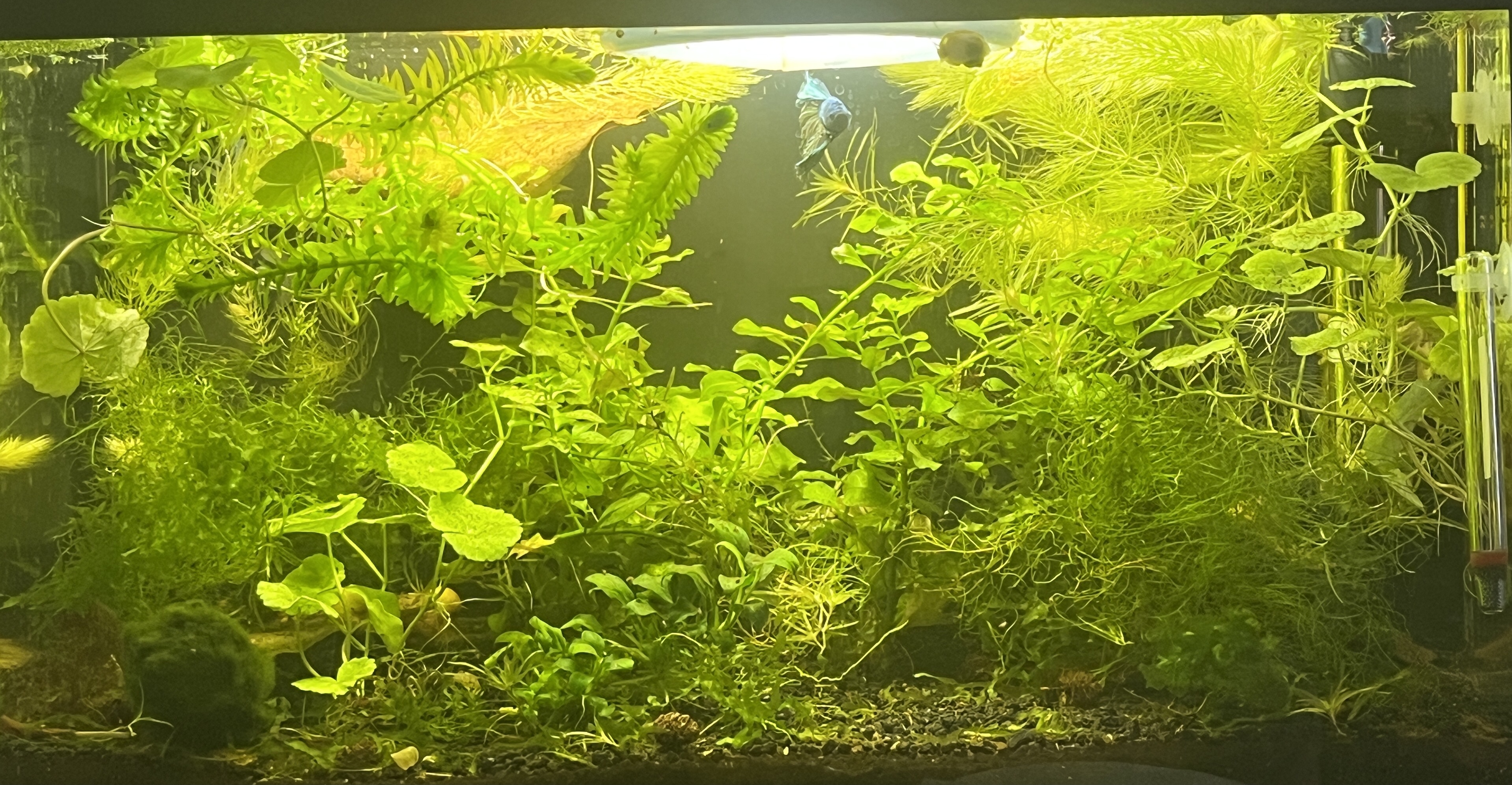 13 lutego było tragicznie.Codziennie nowe, wyszarpane kawałki płetw. Teraz mamy 27 luty i jest poprawa. Oczywiście ciągle są prześwity, nie jest idealnie. Niemniej chyba z każdym dniem trochę lepiej. To co pomogło, to wyjęcie z akwarium wszystkiego, co nie jest miękkolistnymi roślinami (został też filtr i dwie! grzałki) Wyciągnęłam kamienie, korzenie i Anubiasy. Nie bardzo wierzyłam, że to pomoże, bo te dekoracje nie były ostre. Ale o dziwo, od tej rearanżacji nie pojawił się ani jeden nowy kawałek poszarpany, a reszta zaczęła się poprawiać. Strasznie weloniaste ma te płetwy i uwielbia nimi zamiatać akwarium. Większość wygląda dobrze lub prawie dobrze. Górna najbardziej ucierpiała i cały czas widać zmiany.