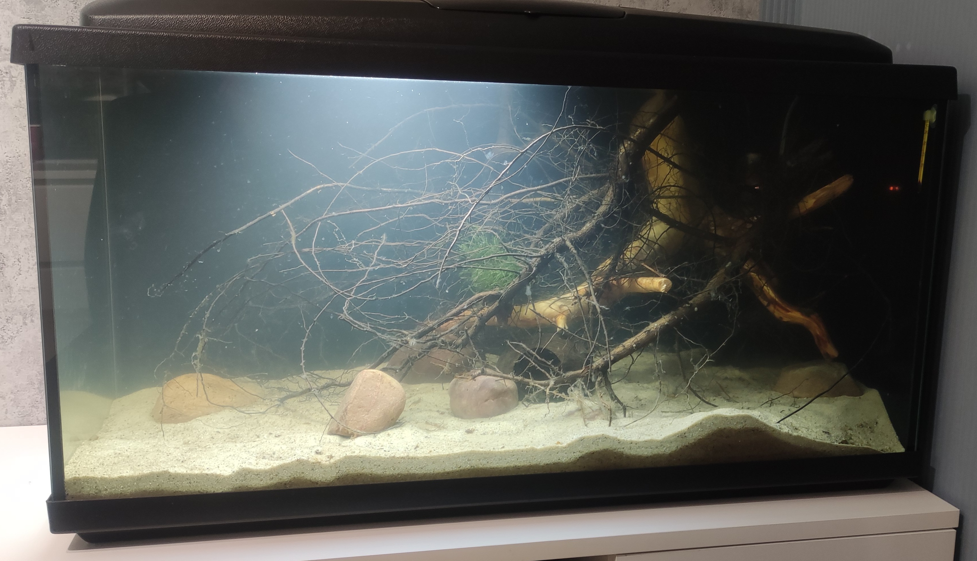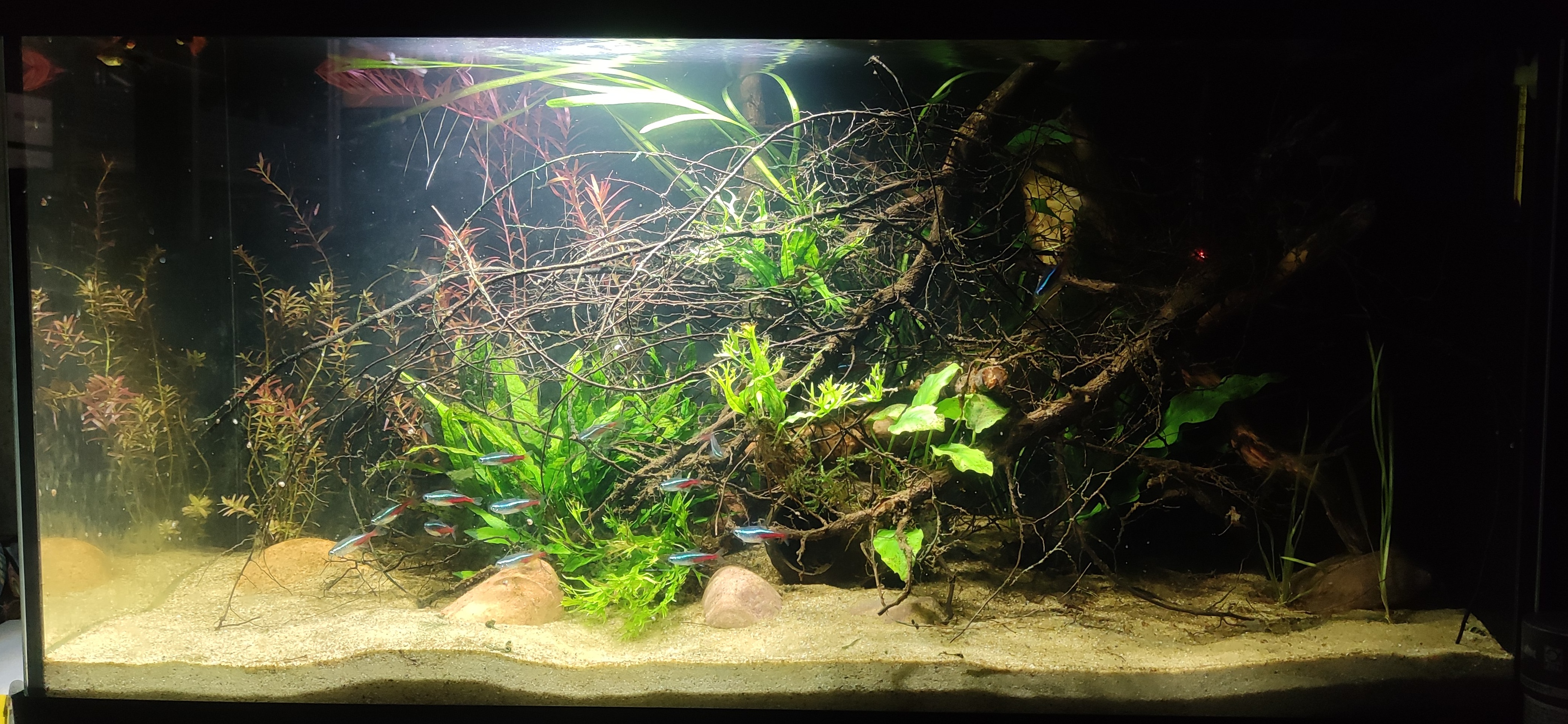 Wody twarde bo na kranówie. Obsada raczej skończy się na neonach Innesa z drugiego akwarium, nie jest to może szczyt ich marzeń ale dają sobie radę. W związku z tym, że nie będę kombinował ze zmiękczaniem wody to odpuszczę jakieś apisto.