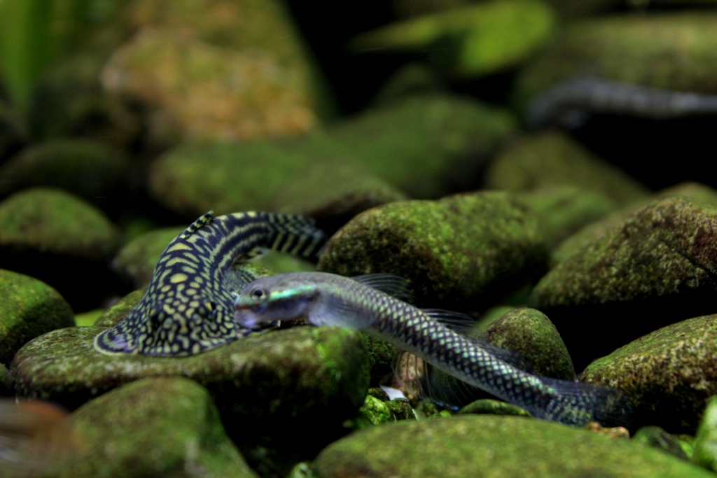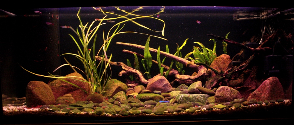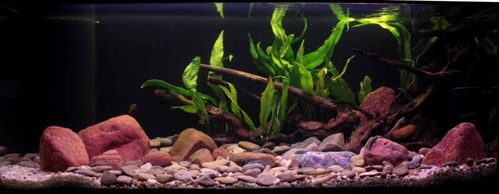 Nie miałem aspiracji, by było to akwarium biotopowe, chciałem po prostu stworzyć warunki odpowiednie dla posiadanych ryb - woda dobrze natleniona, płynąca szybszym nurtem, kamienne dno dające dużo miejsca na osiadanie glonów - główne miejsce żerowania większości planowanych ryb.