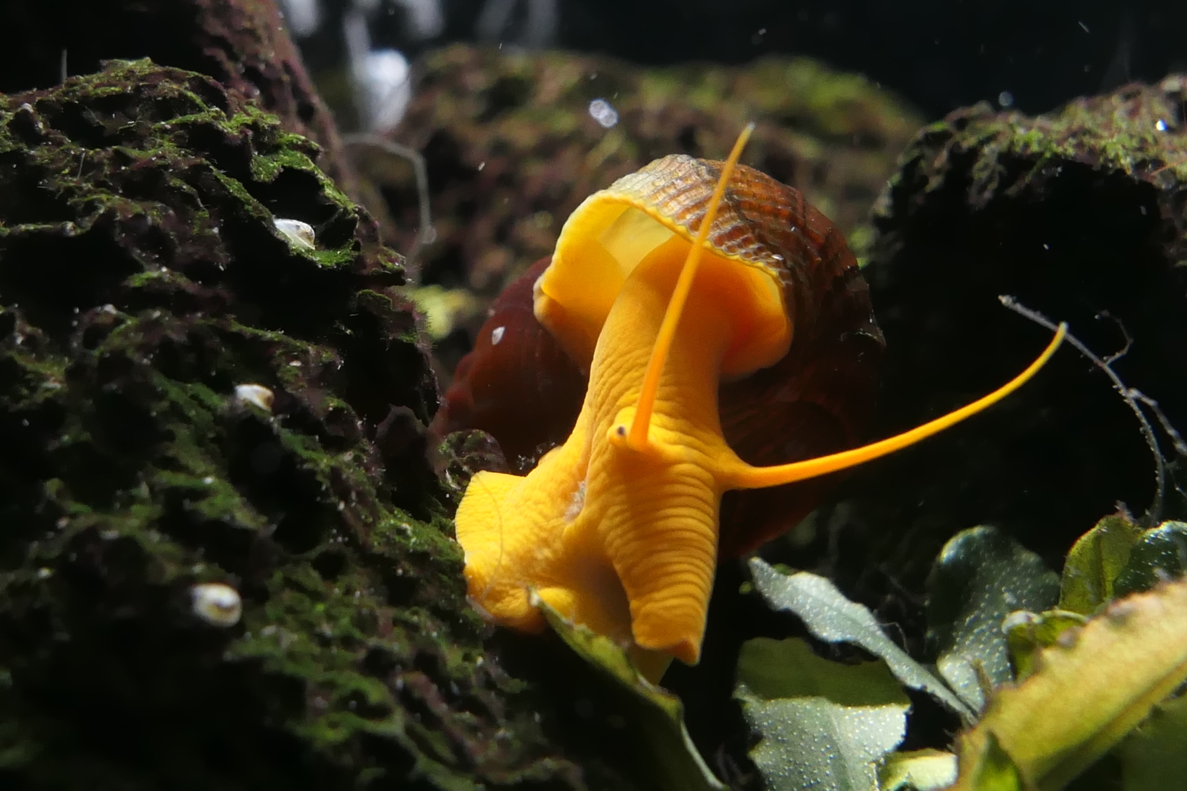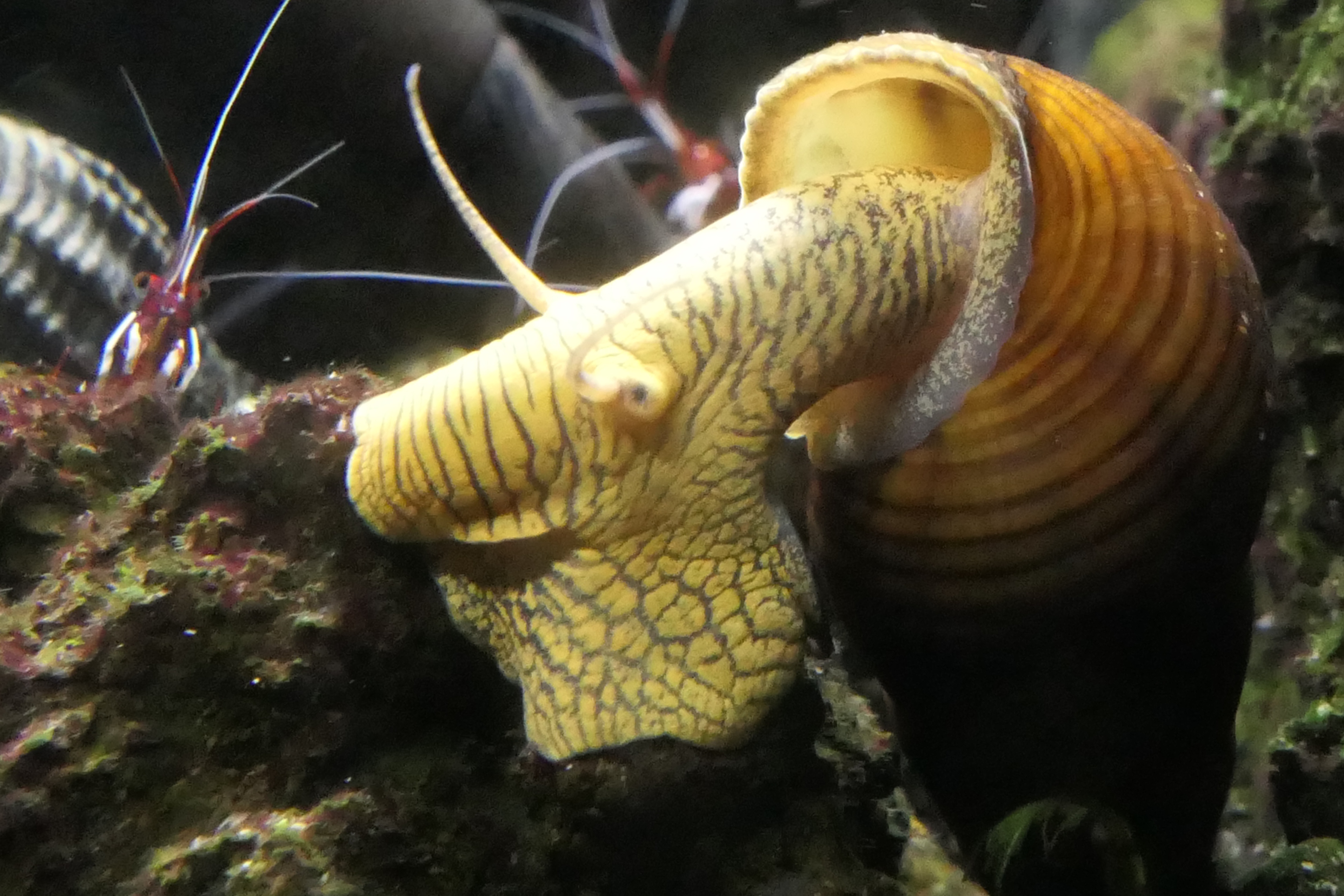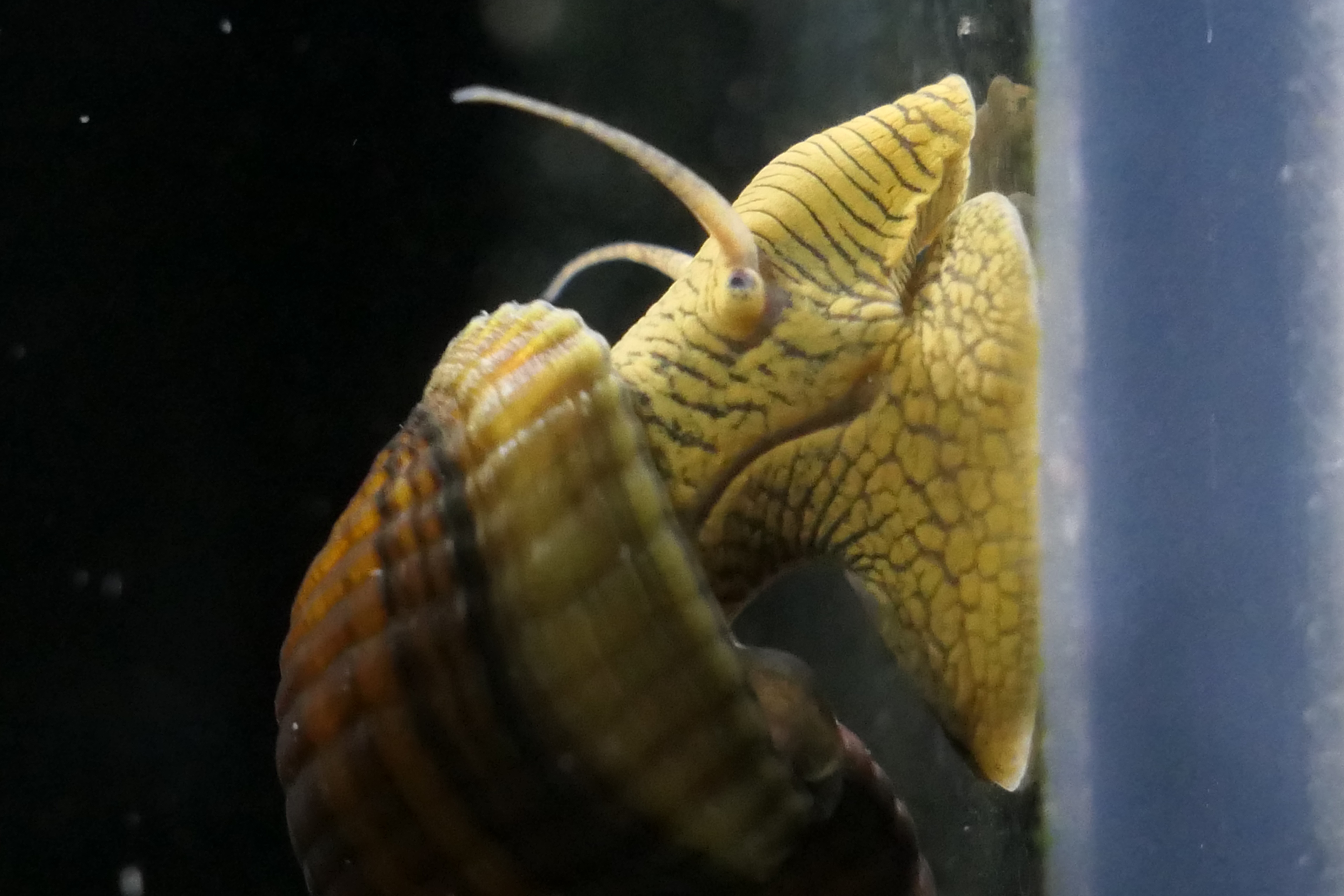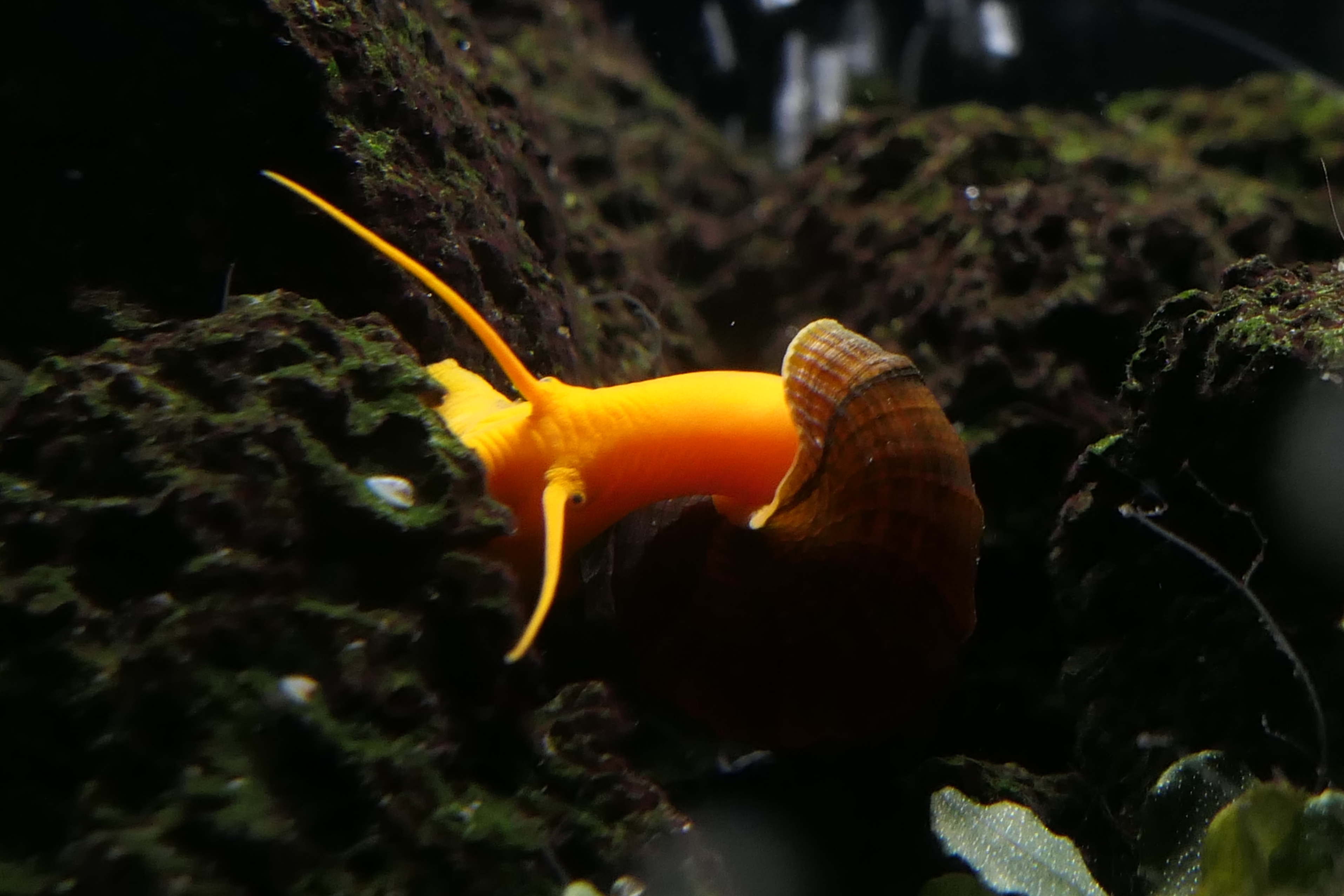 Tylomelania sp. Yellow Rabbit. Byłam w sklepie z Bojkami i złapałam sobie jedną. Fajna jest. Je ogórka i łazi po całym akwarium. Jak często dokarmiać jak akwarium młode?