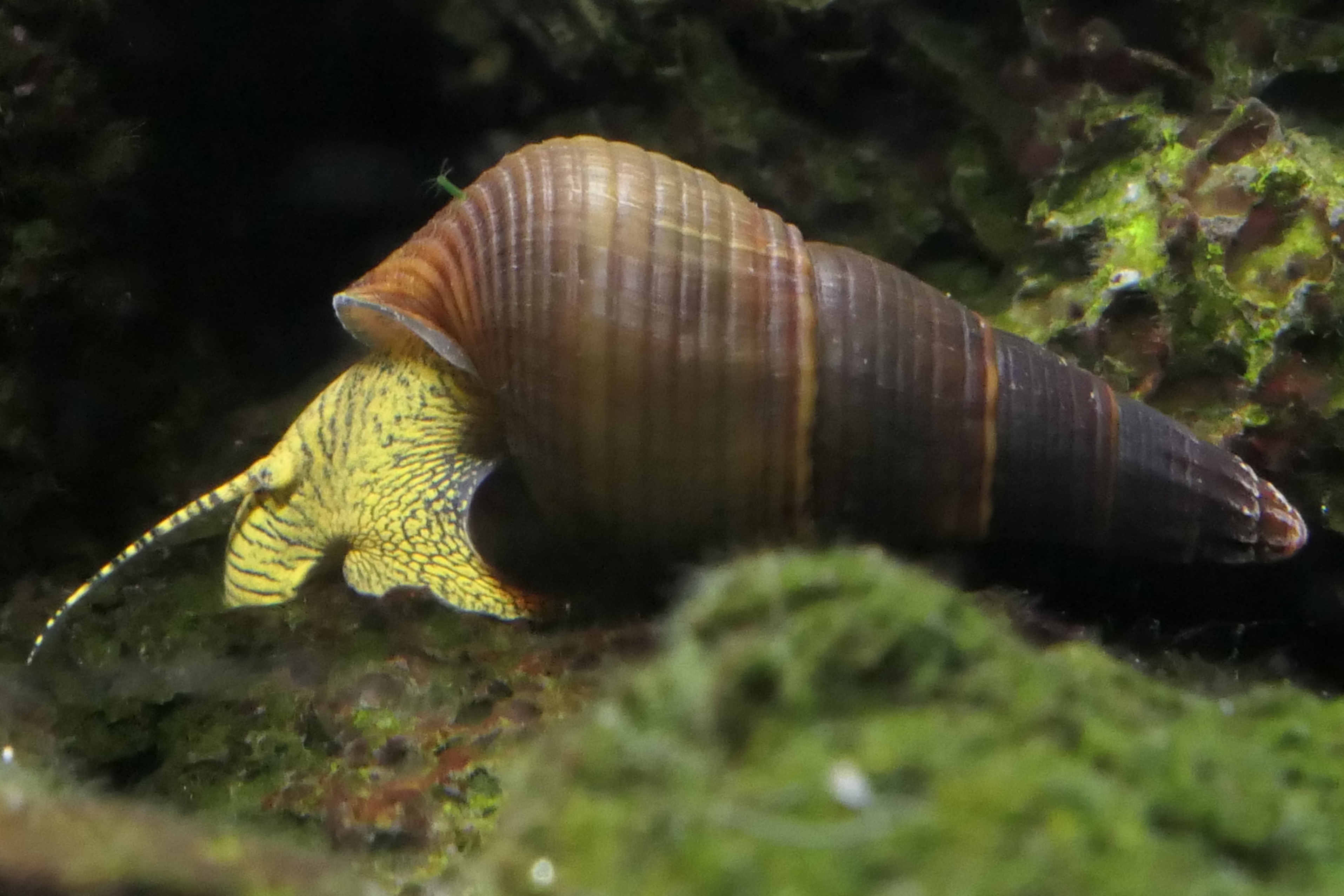 Dla tego pięknego ślimaka akwarium powinno być wyposażone w korzenie , kamienie z kawałkiem dna piaszczystego.