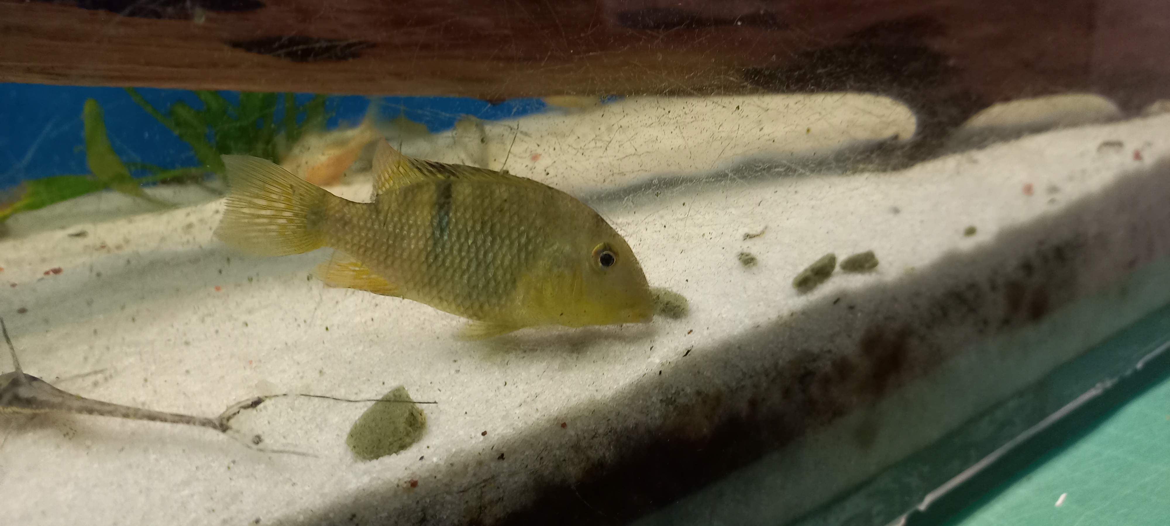 Po małym rozbracie mój ulubiony gatunek ziemiojadów ponownie zawitał w moim zbiorniku :D Na zdjęciu jeden z młodzikówf1/f2, które mają ok 5-6 cm i wykluły się 15.07.2023 r.