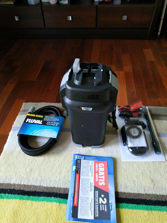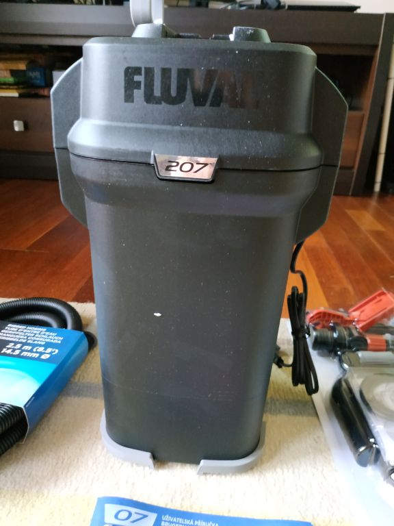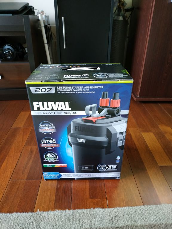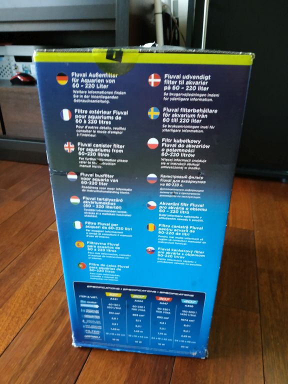 Nigdy nie miałem zewnętrznego filtra tej marki. Pierwsze wrażenie – sprzęt umieszczono w dobrym jakościowo pudle z rączką, które dodatkowo zostało zabezpieczone plombami. Sam filtr nie jest duży. Producent przewiduje użycie go w zbiorniku o litrażu od 60 do 220. W moim odczuciu 112l to max.