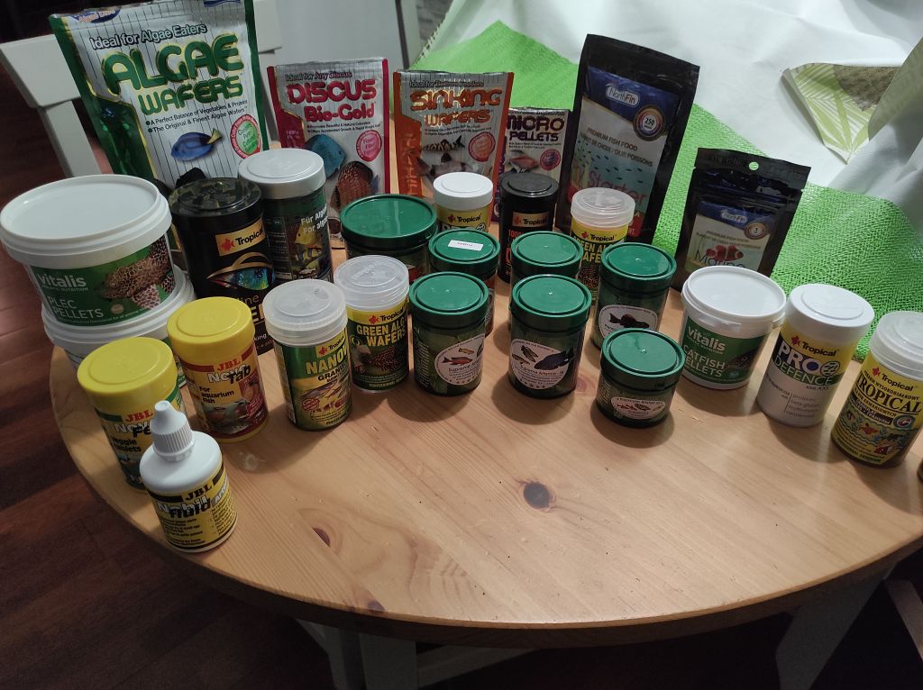 - własnej produkcji mieszanki, głównie dla narybku (żółtko, drożdże i takie tam)