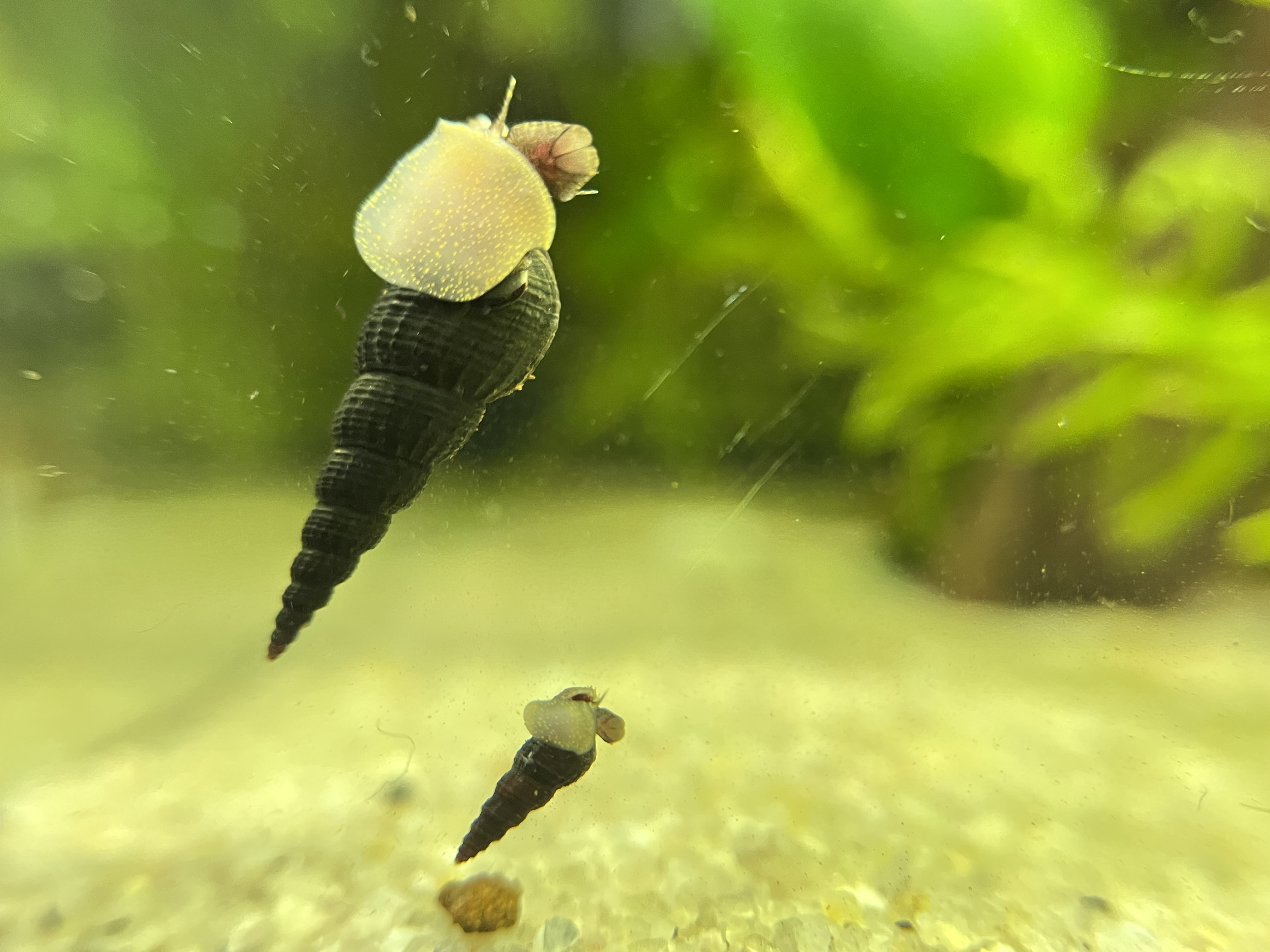 Czy Wasze ślimaki też tak mają (te większe)? Co to może być. Wygląda jak małe ślimaczki świderki. Wiem, że to mogą być przywry, ale może ktoś z Was wie co to faktycznie jest.